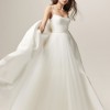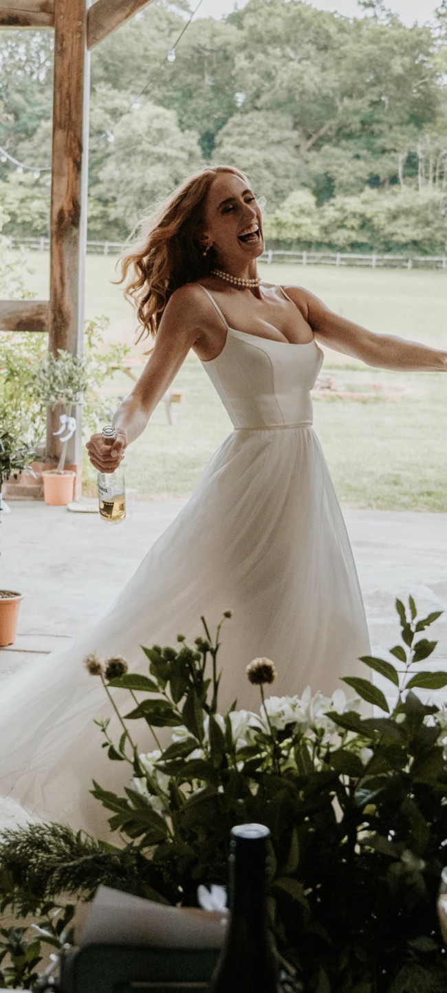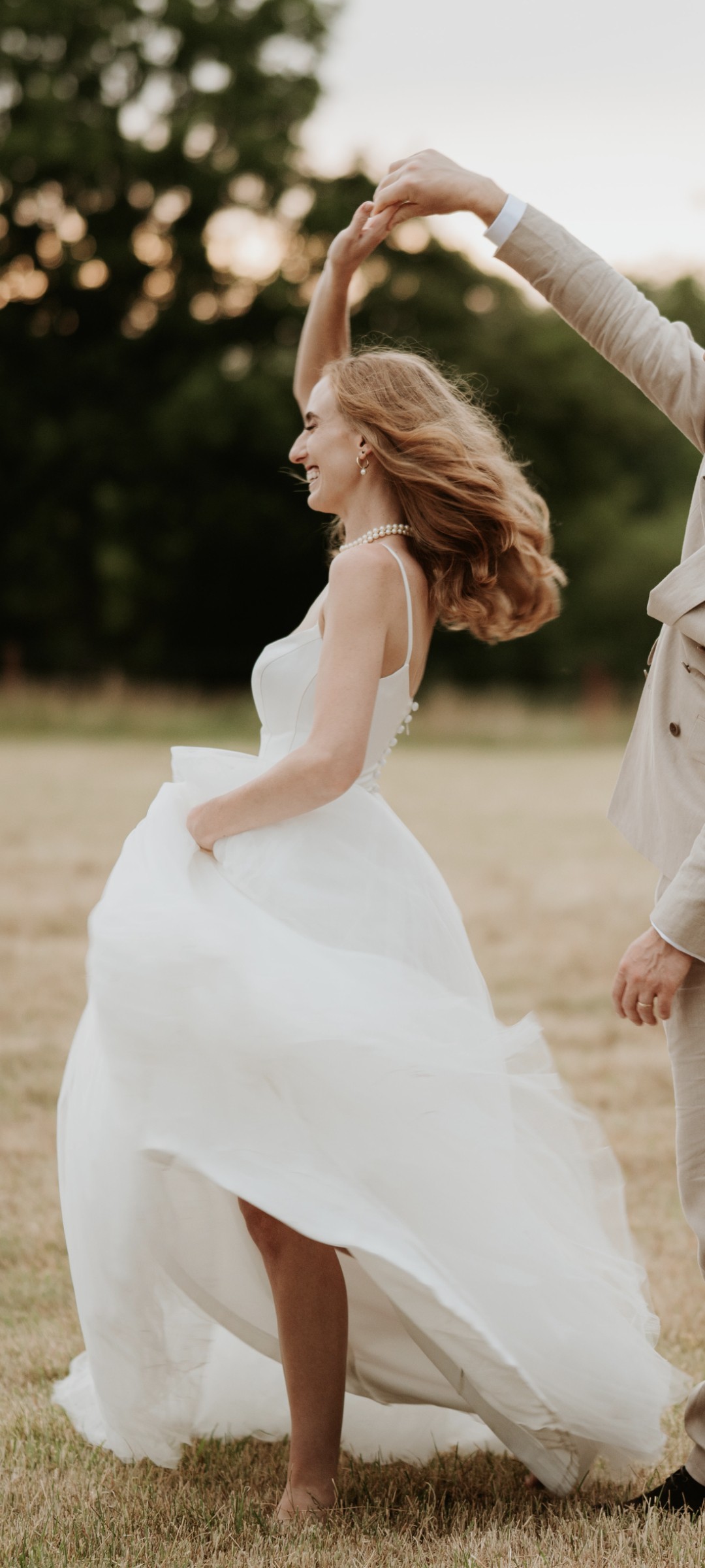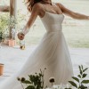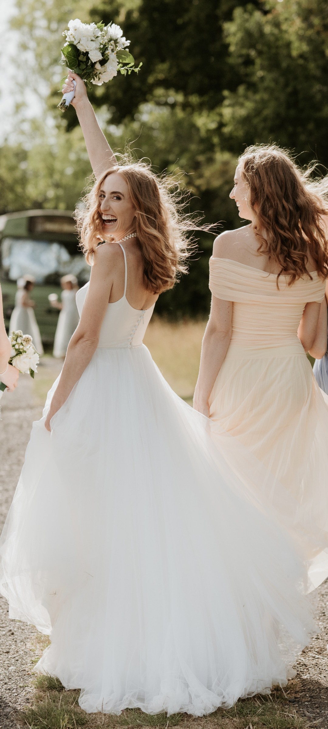 This beautiful wedding dress features a classic A-line silhouette with a soft, flowing skirt made from multiple layers of fine tulle (netting), giving it a light, romantic movement. The bodice has a slight scoop / soft square neckline with spaghetti straps and a mid-back finish, keeping the look elegant and timeless. I purchased the dress new in March last year for my wedding in July, and it was a lovely dress to wear on the day. It was incredibly comfortable and easy to move around in, which was really important to me. I wanted a dress I could dance in, and this one was perfect - light, floaty, and giving a beautifully romantic feel throughout the day and evening. The dress has undergone custom alterations, including: - Boning added to the bodice to provide extra bust support (my bust size is 34DD). This boning can easily be removed or adjusted by a seamstress if a smaller size or different fit is needed. This all said, I found it challenging to find a dress suitable for my bust size and that was why I purchased it so close to my wedding date. I was really pleased with the final look! - The waist was taken in for a more tailored fit and the dress was lifted/hemmed, however I am still quite tall (approx. 171 cm, and 176 cm with heels) so if you are shorter than me, it should be very straightforward to have it taken up further. - The dress has been professionally dry cleaned but, as I wore it again later in the last year to show my grandmother who wasn't able to attend the wedding, I am currently having it dry cleaned again so it should be ready to view in the next couple weeks. There was some very slight discoloration at the bottom hem from being outdoors on the day of the wedding but it has been thoroughly treated! - There are also a few tiny holes in the bottom layers of the tulle, which is fairly typical with this fabric. They are not noticeable at all unless you are actively searching for them - I only spotted them after the first dry clean, and they do not affect the overall look or wearability of the dress.
