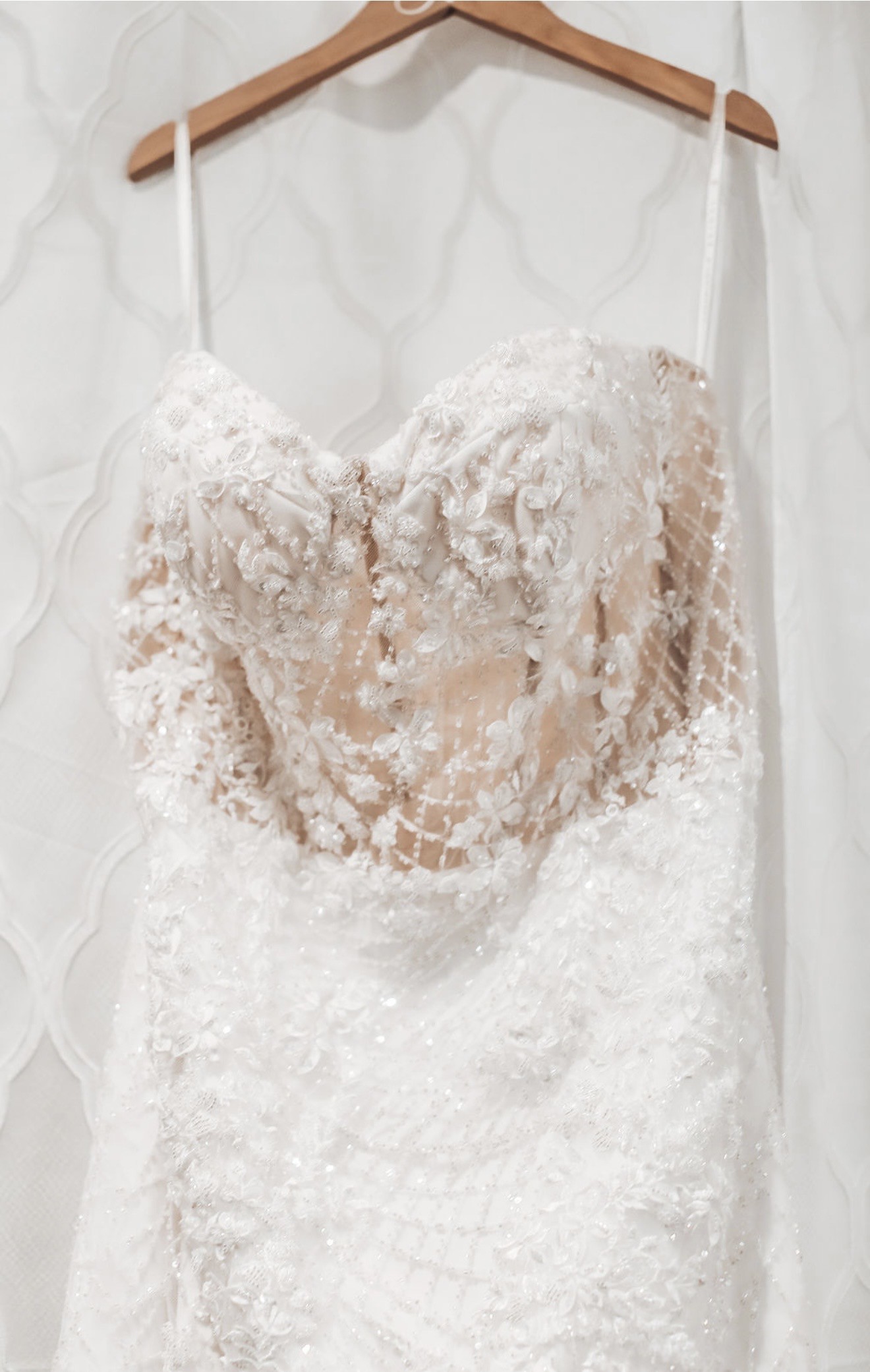 This is a stunning, high-quality designer gown that photographs beautifully and is perfect for a bride looking to save without sacrificing style or structure.