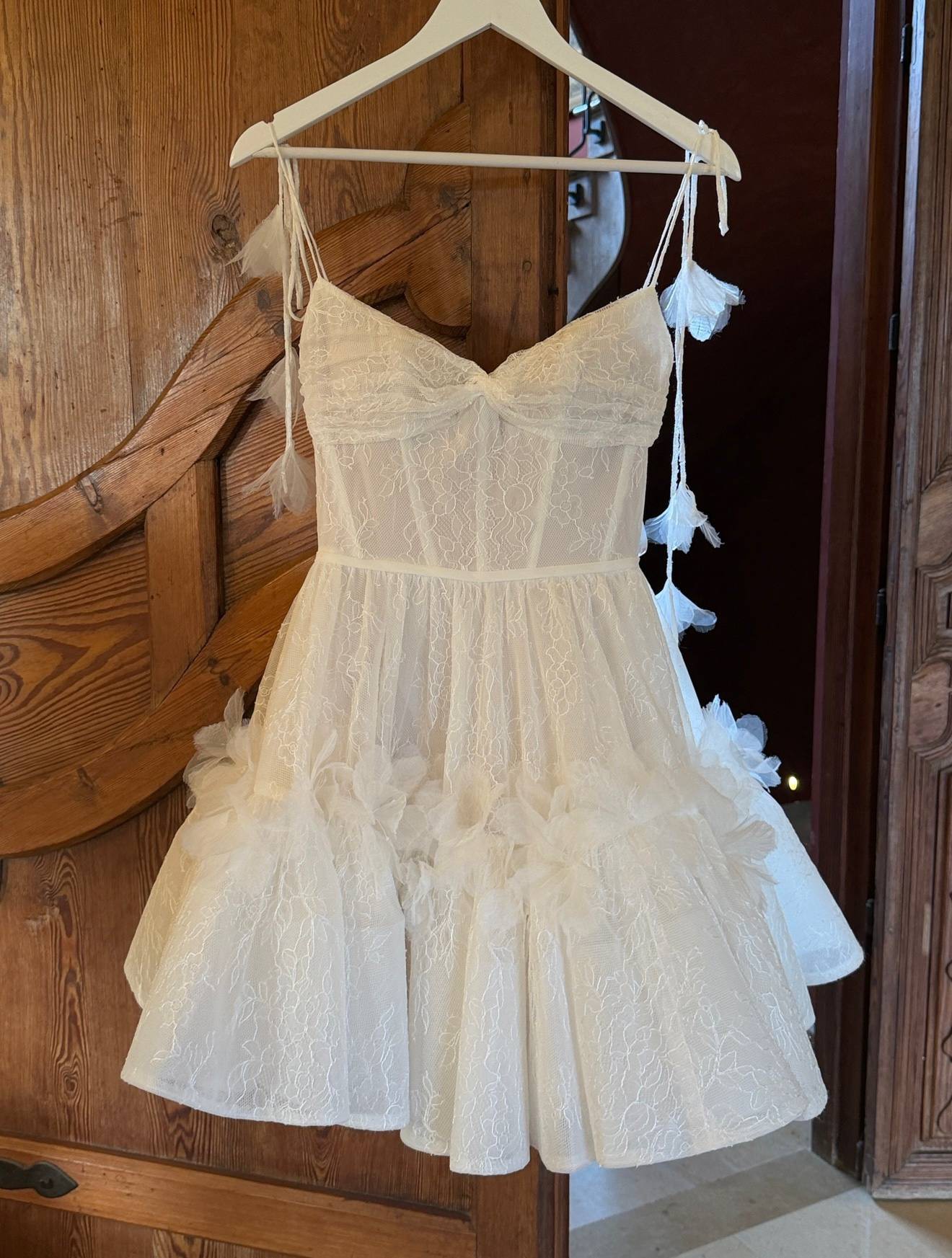 It is very lightweight and comfortable, featuring a corset-style bodice that beautifully highlights and defines the waist.