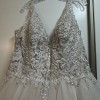 The low back adds a touch of allure, making this dress perfect for those candid moments. As you glide down the aisle, the intricate beading, delicate embroidery, and sparkling sequins will catch the light, drawing the eyes of all your loved ones. The floor-length design creates a timeless look, making you feel like the princess you’ve always dreamed of being.