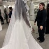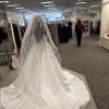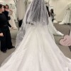 One of the standout details is the high leg slit, which adds a bold, contemporary edge and allows for effortless movement and comfort. The skirt has a luxurious, architectural drape that photographs beautifully and makes a statement from every angle. The overall design blends classic bridal elegance with modern sophistication, making it perfect for a chic city wedding, destination celebration, or elevated indoor venue. This dress is ideal for a bride looking for something unique, flattering, and unforgettable — a true showstopper that has never been worn and is ready for its first walk down the aisle.