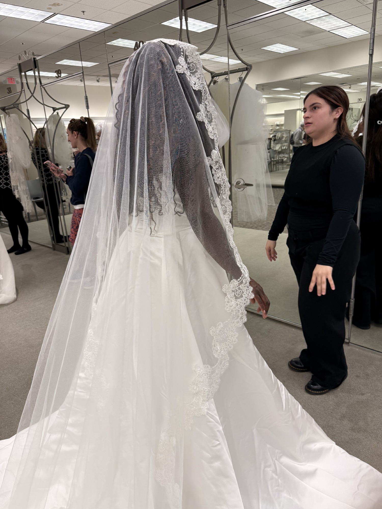 This stunning wedding dress is brand new and unworn, purchased in November and kept in perfect condition. It features a modern yet timeless silhouette with a structured strapless corset bodice that cinches the waist beautifully and offers incredible support. The clean, elegant neckline highlights the décolletage, while the fitted bodice flows into a dramatic full skirt that creates a striking, fashion-forward look.