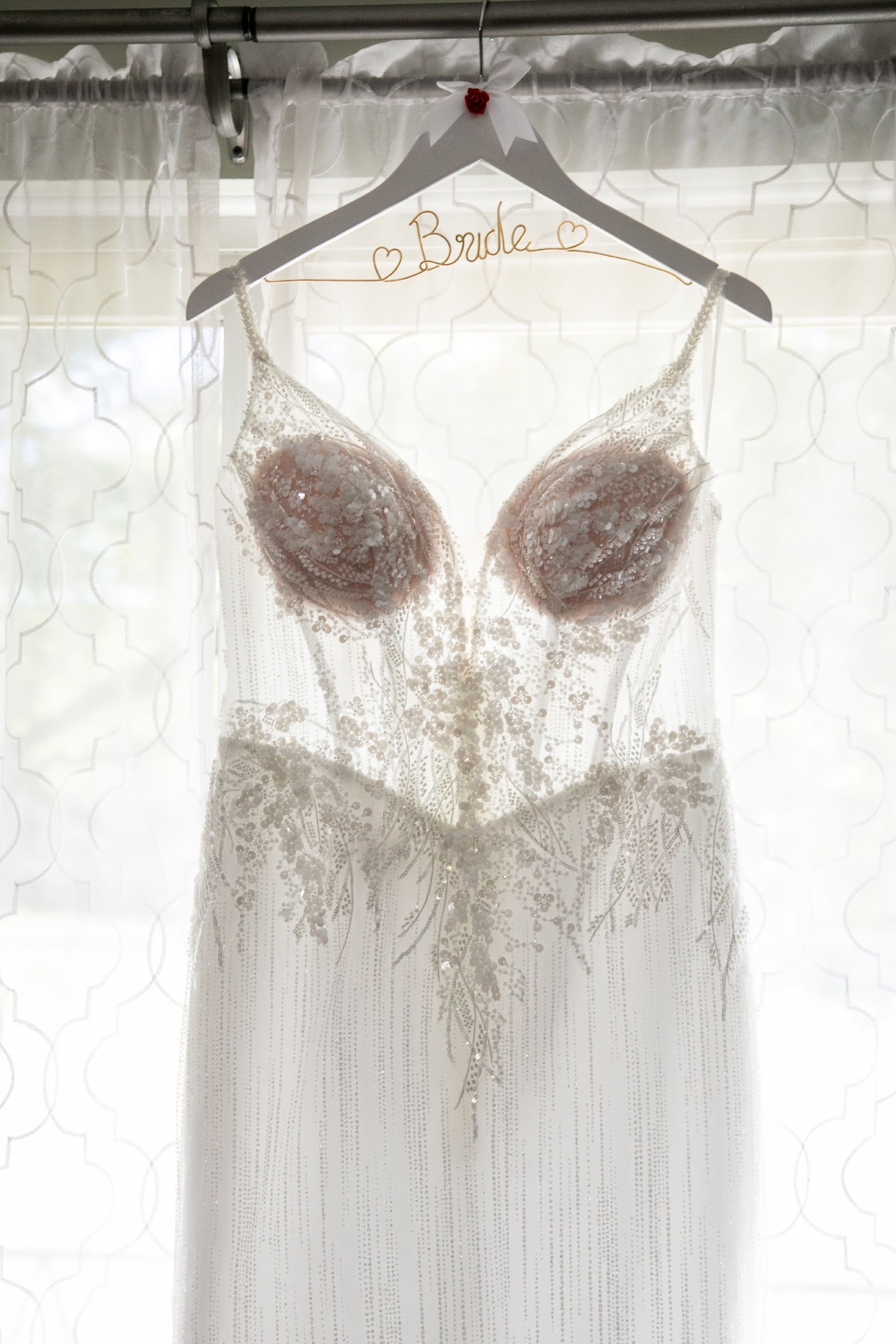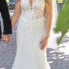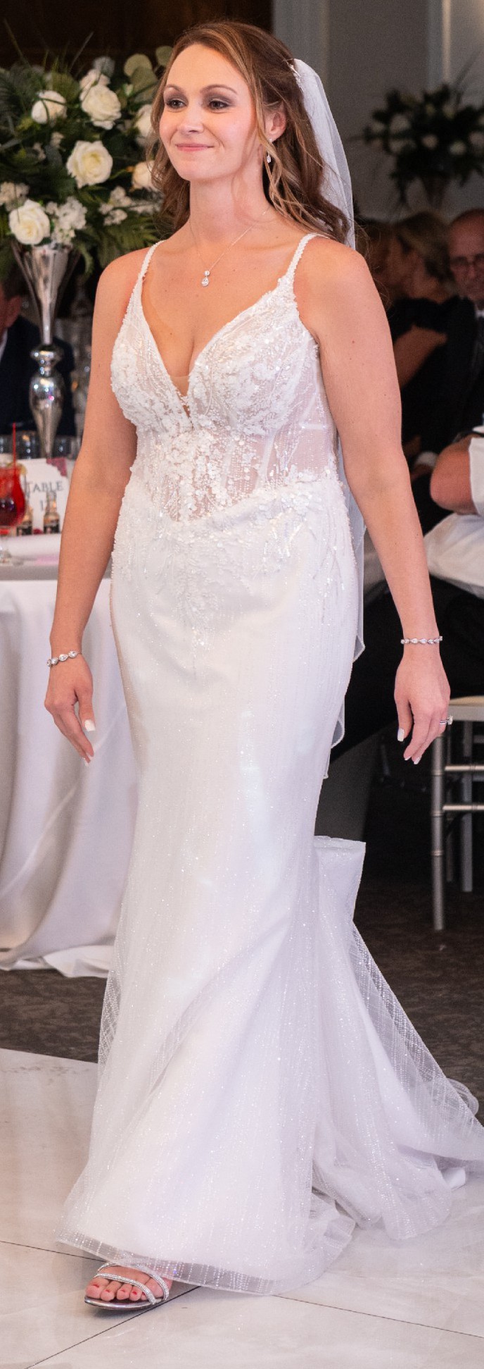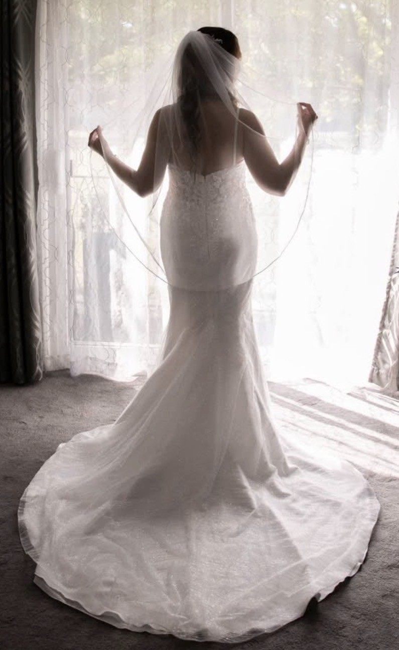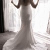 Trumpet style wedding dress features a V-neckline and a low back. The delicate spaghetti straps offer both support and a refined finish, and won’t leave you in pain from how heavy some dresses can be.
