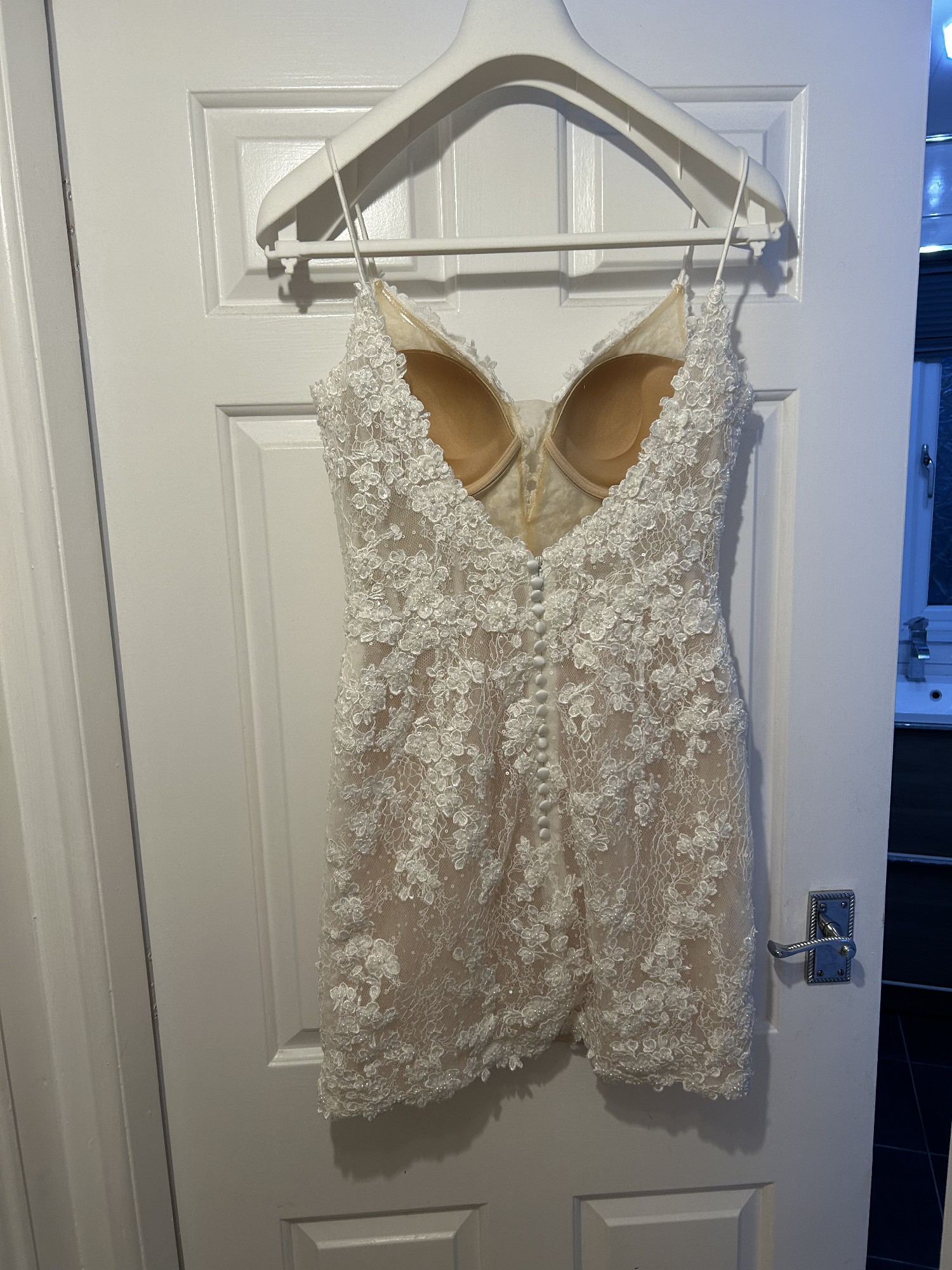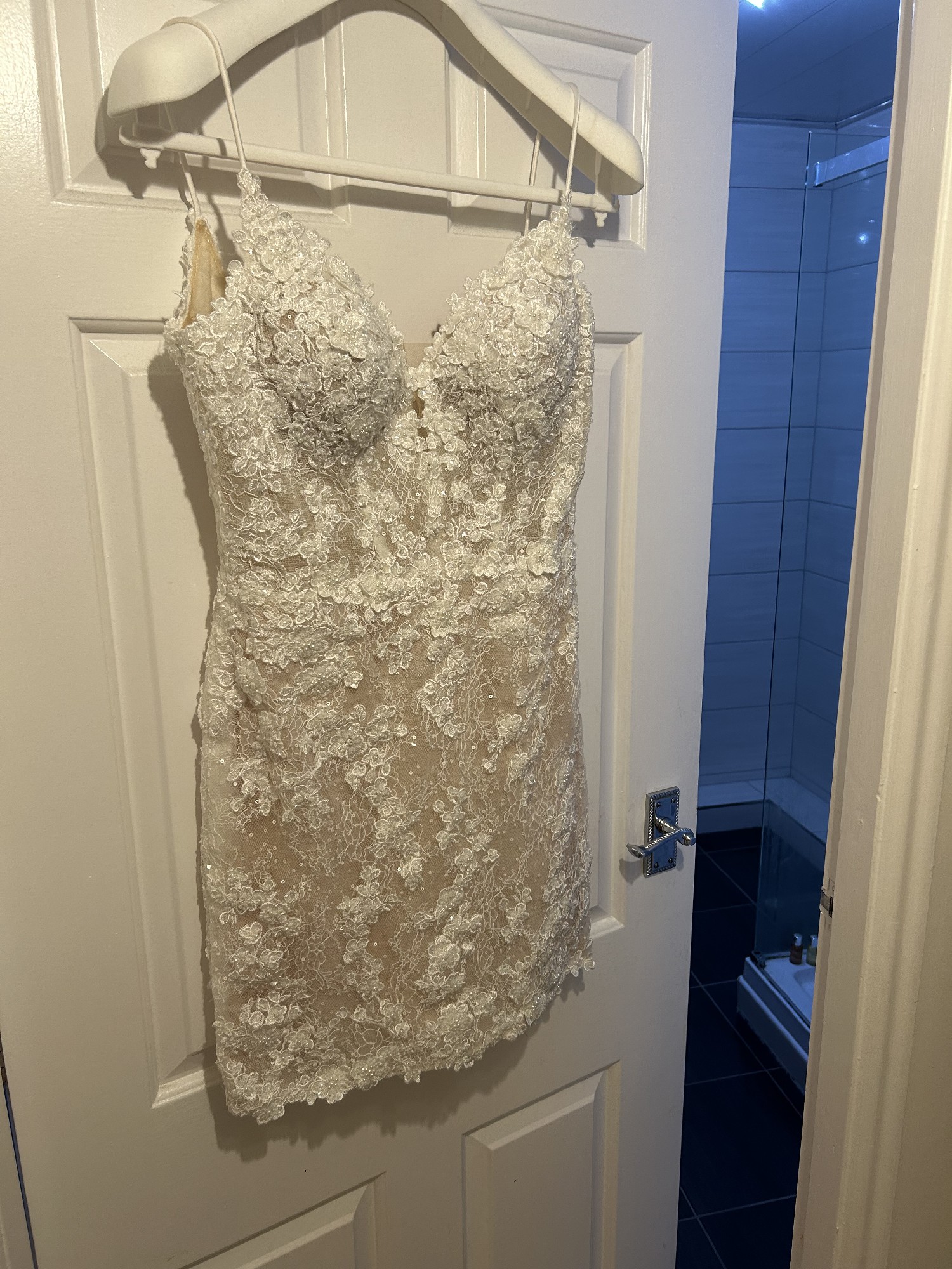 I have my stunning mini wedding dress for sale. I wore this as my. Night time dress but a detachable gown skirt can be bought for this so the dress is 2 in 1 and day into night.