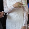 Beautiful Honeysuckle Chantilly Lace Wedding Dress + Veil