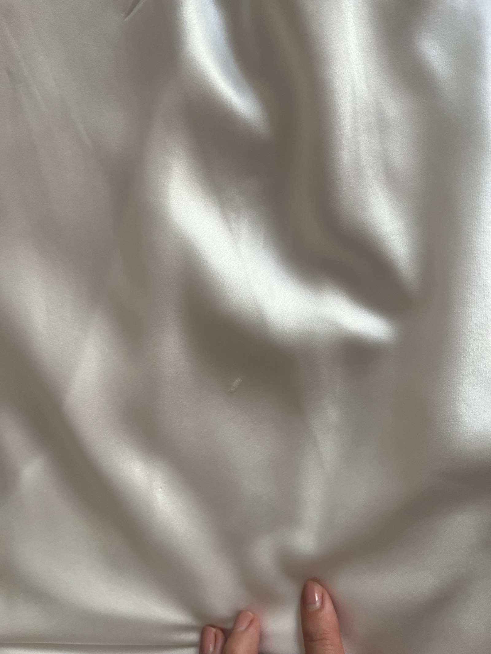 - Pearlescent Fresh Ivory medium weight satin with a luxuriously smooth finish and effortless drape