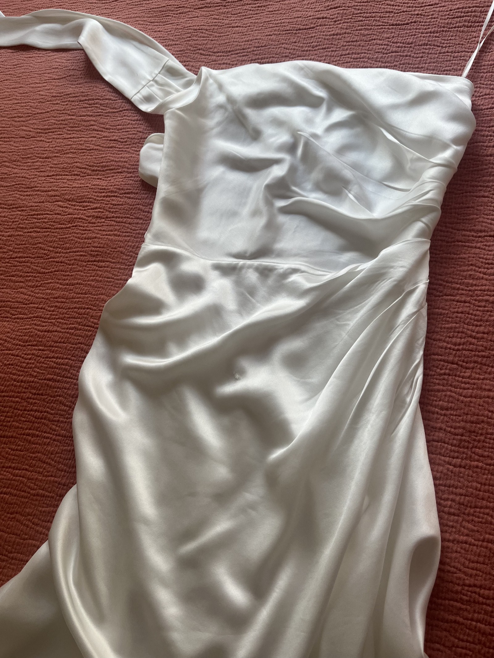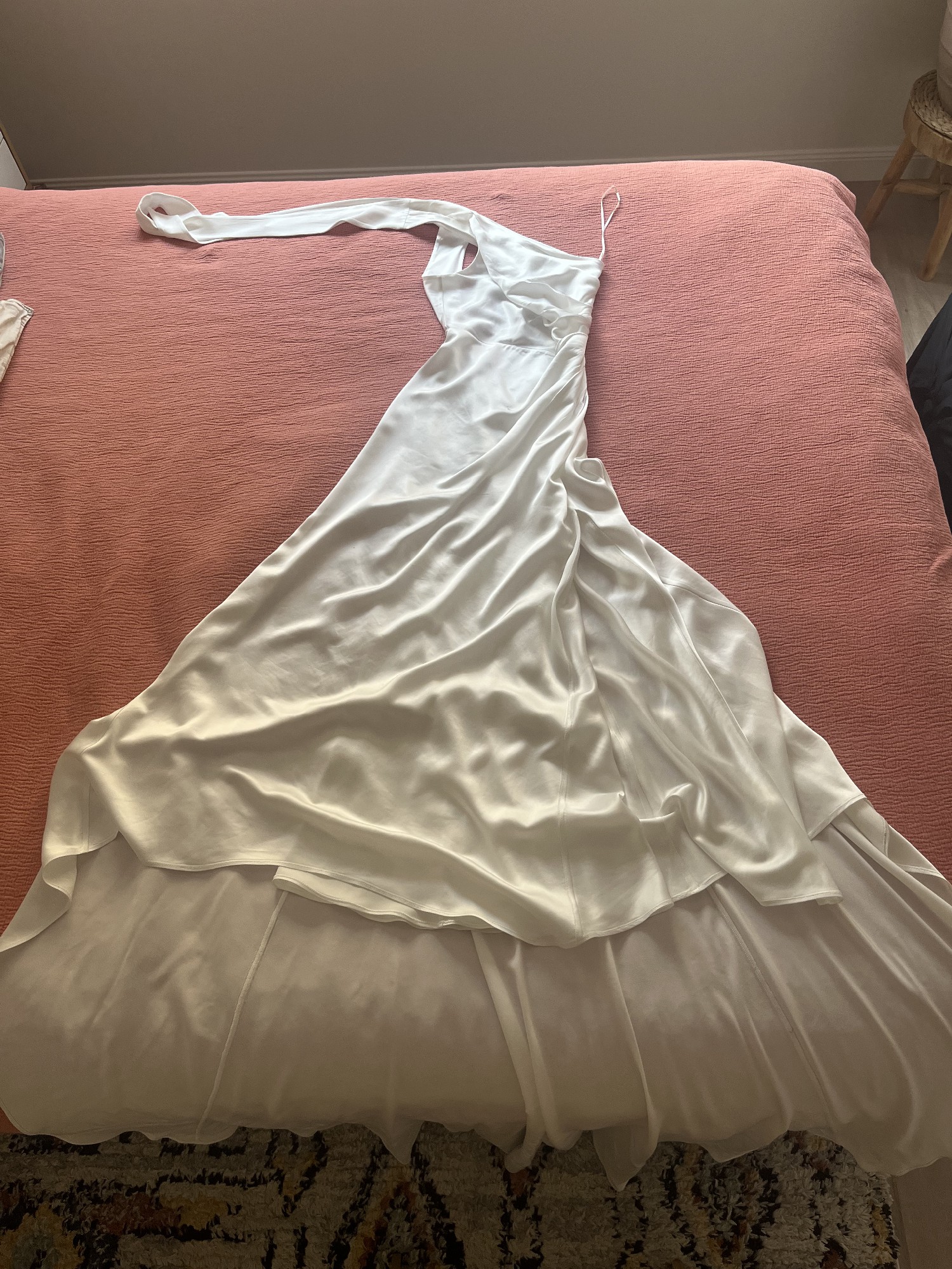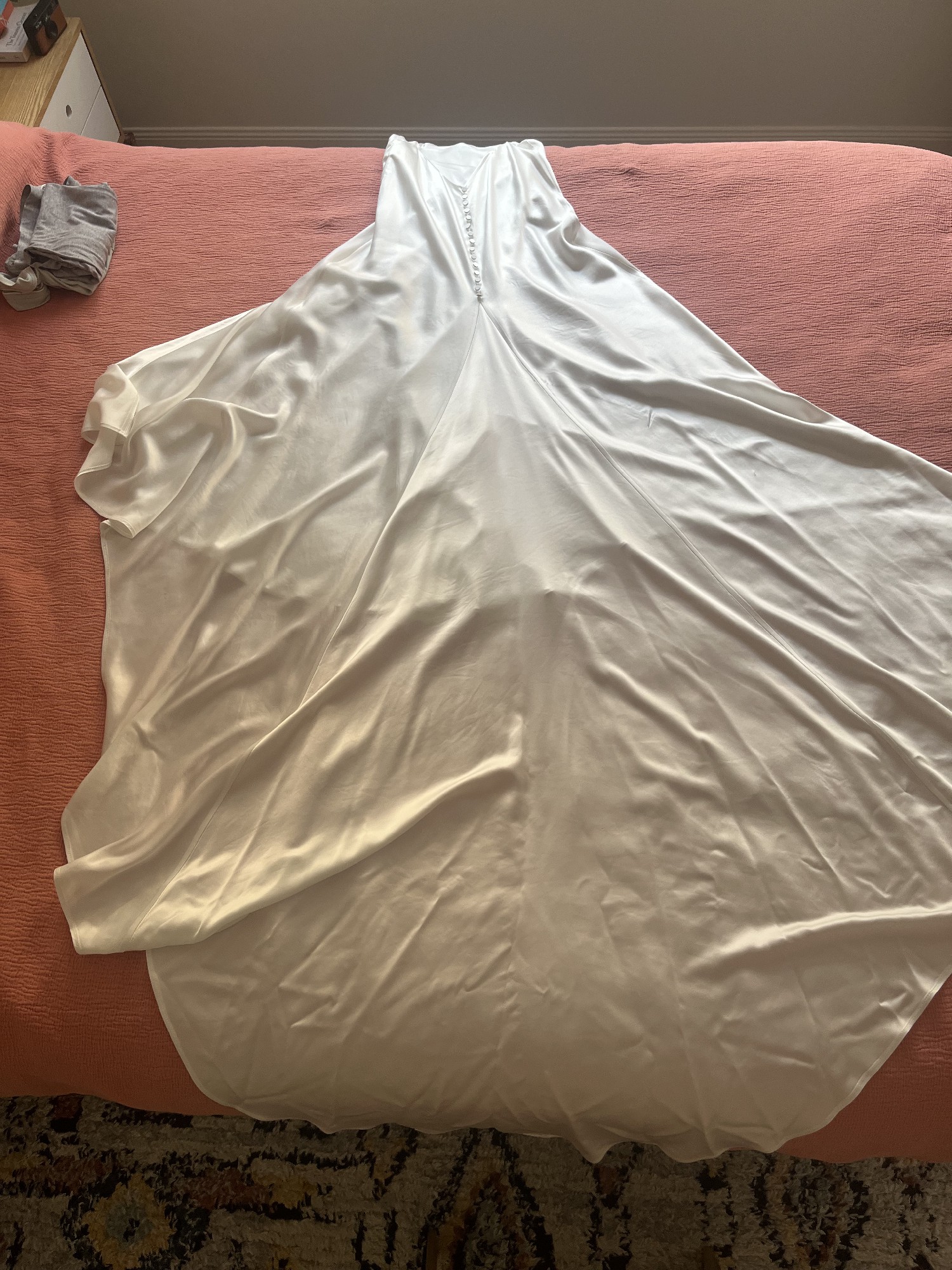 - Professionally dry cleaned a few days after the wedding (October 2025)