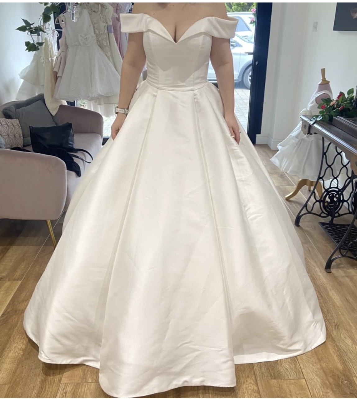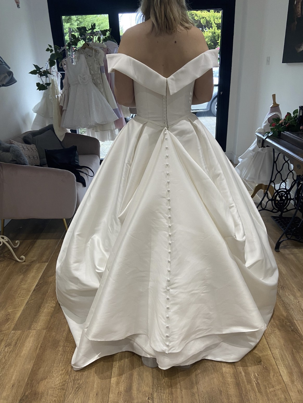 A classic style dress made even better with pockets. It was very comfortable on the day and didn't require constant readjustment.