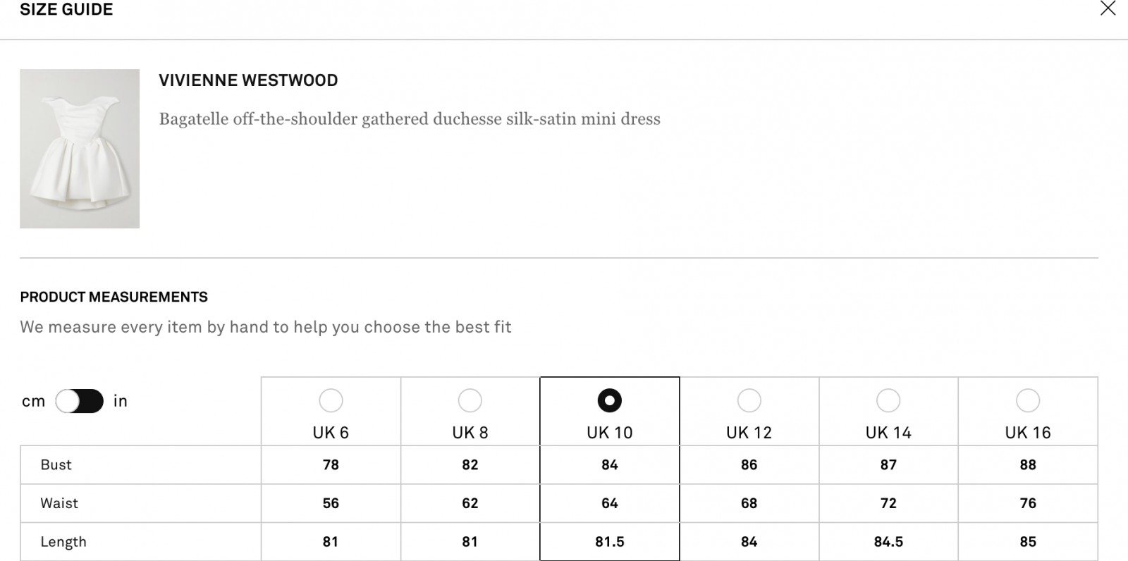 Garment information as per Net-a-Porter:
