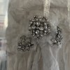 - The silver appliqués at the hip gathering were added