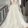 This custom-made Wona NYC wedding dress is truly a masterpiece, designed to make every bride feel as radiant as possible on her special day. With its elegant A-line silhouette and flattering V-neckline, it strike the perfect balance of sophistication and romance. The high back adds a touch of mystique, while the long sleeves offer both coverage and grace, making it suitable for any season.