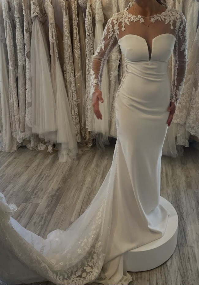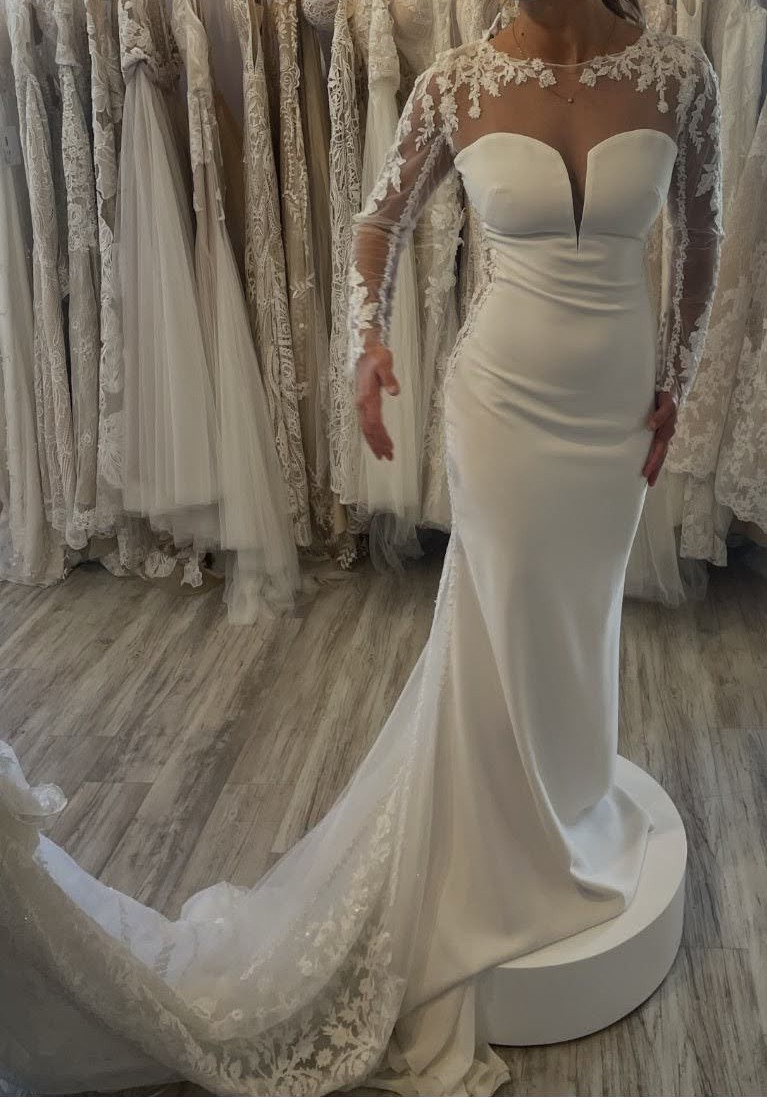 Perfect for the modern bride who seeks both tradition and edge, the Bacall dress ensures you will feel confident as you celebrate your love. Whether in a grand chapel or an intimate garden, this beautiful gown will leave a lasting impression, making your special day even more magical. Don’t miss the chance to make this stunning piece yours; it's more than a dress—it's the beginning of your beautiful forever.