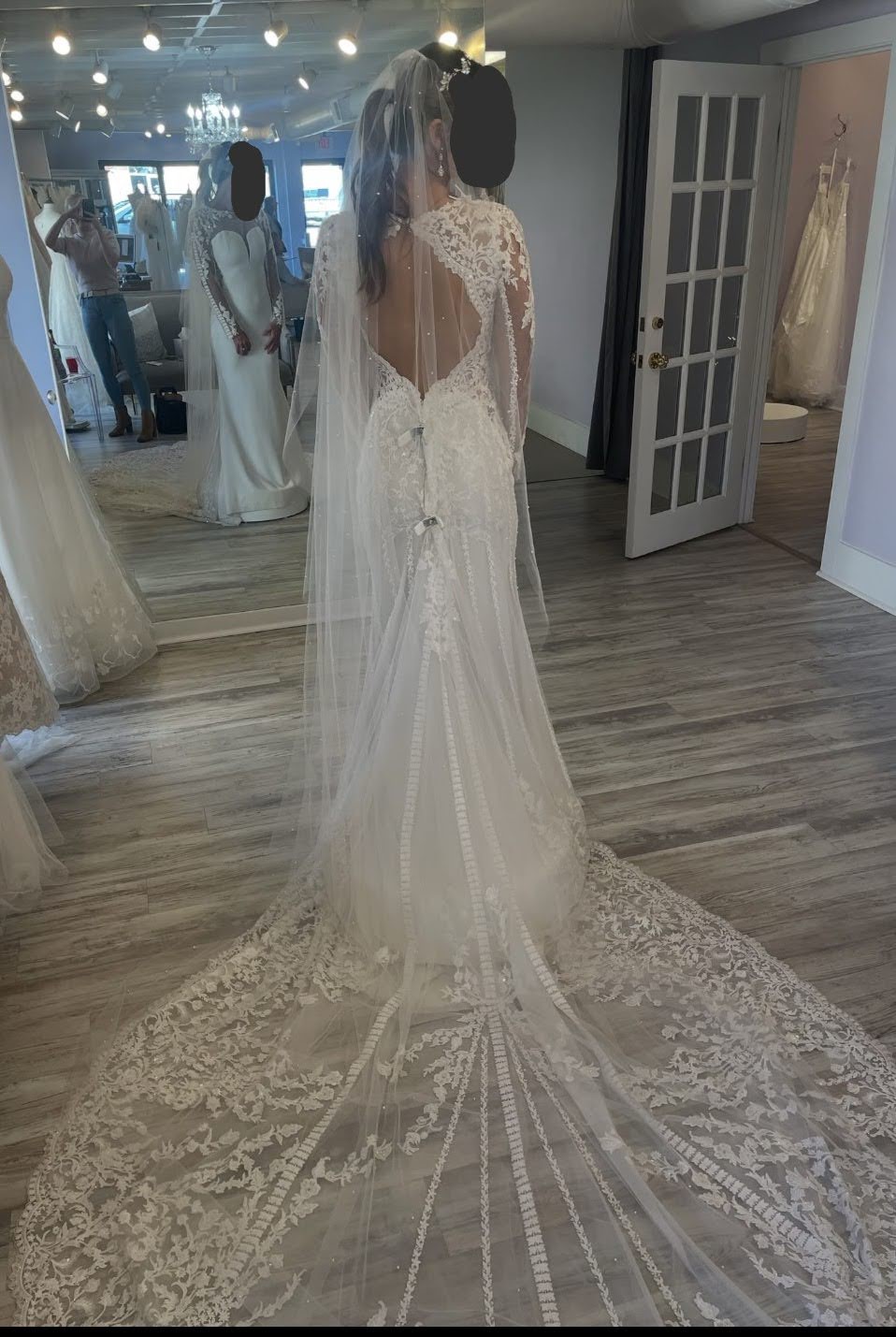 This is a new dress, that only was tried on when purchased. This has NOT been worn during a wedding/ceremony. No alternations have been made.