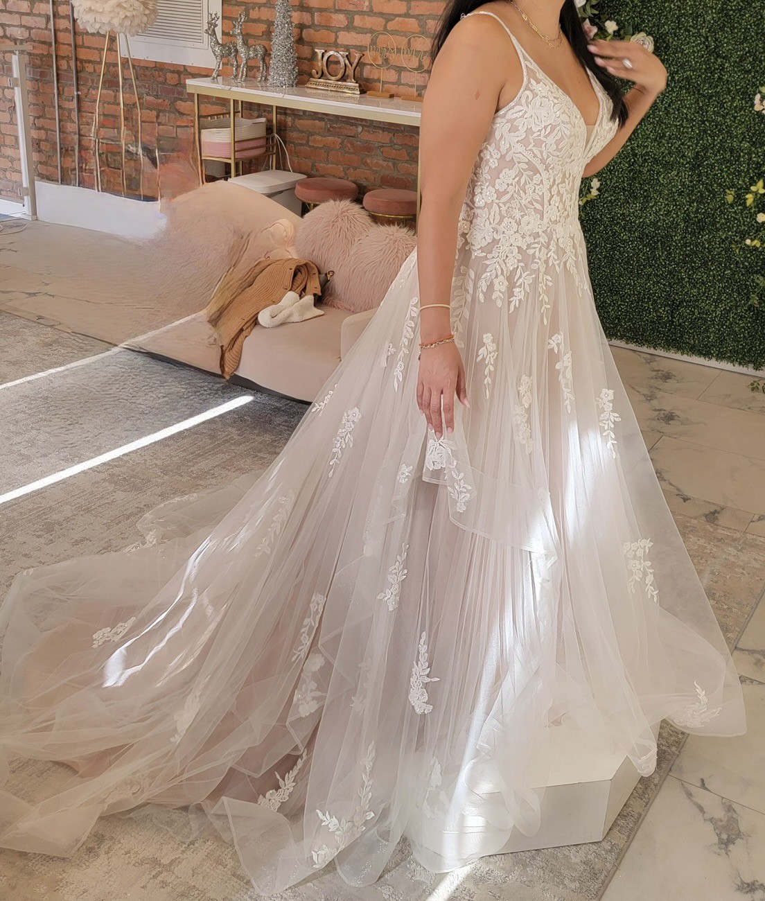 Condition: This dress is a floor sample in good condition and has never been used in a wedding. It still has the original boutique store tag attached ($1,650 retail).