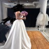 The floor-length skirt cascades gracefully, enveloping you in layers of sumptuous fabric that flow effortlessly as you move. The ivory color captures the essence of purity and sophistication, providing a stunning canvas for your bridal vision. Delicate details and luxurious materials ensure that this dress not only looks stunning but feels comfortable throughout your celebrations.