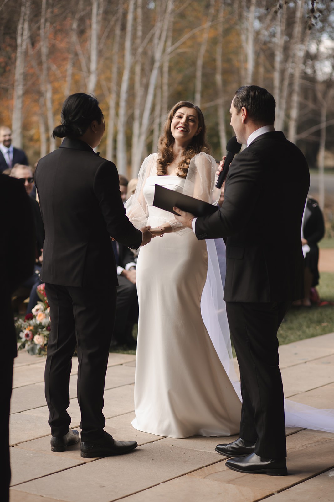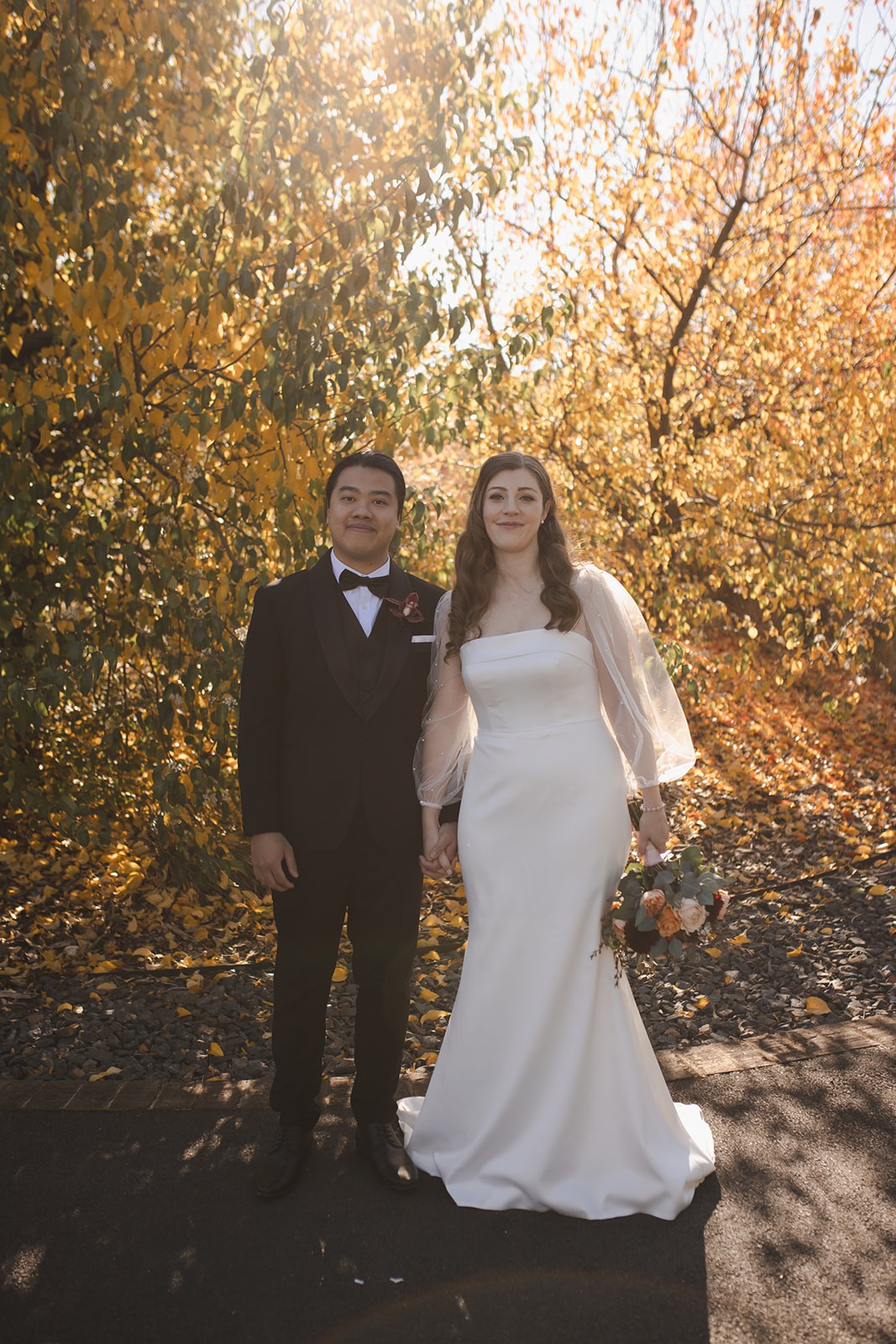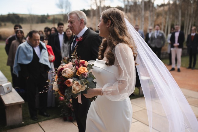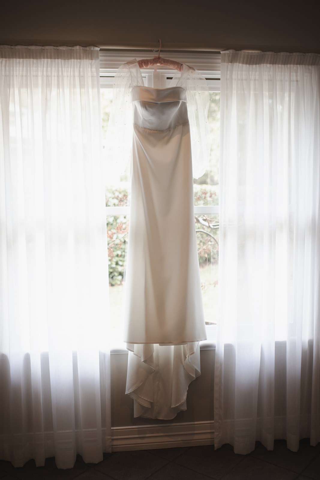 This timeless custom-made dress was designed by Jayleen Bridal House. The fit and flare silhouette hugged my curves perfectly, making me feel confident and beautiful as I walked down the aisle. The fold over straight neckline (a piece of fabric folds down over the bust creating a draped effect) adds a touch of elegance, complemented by the delicate pearl detailing on the waist and detachable sleeves.