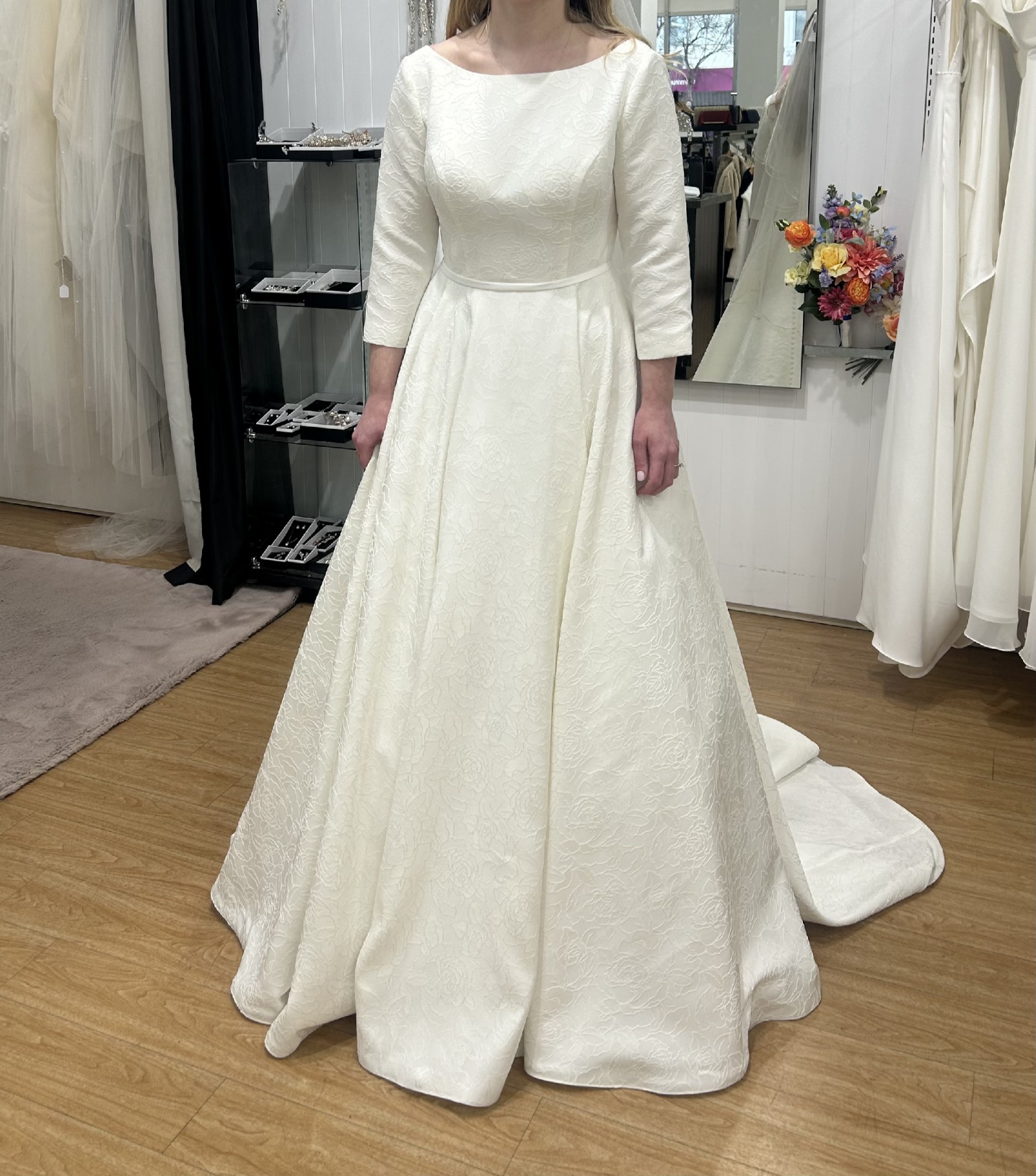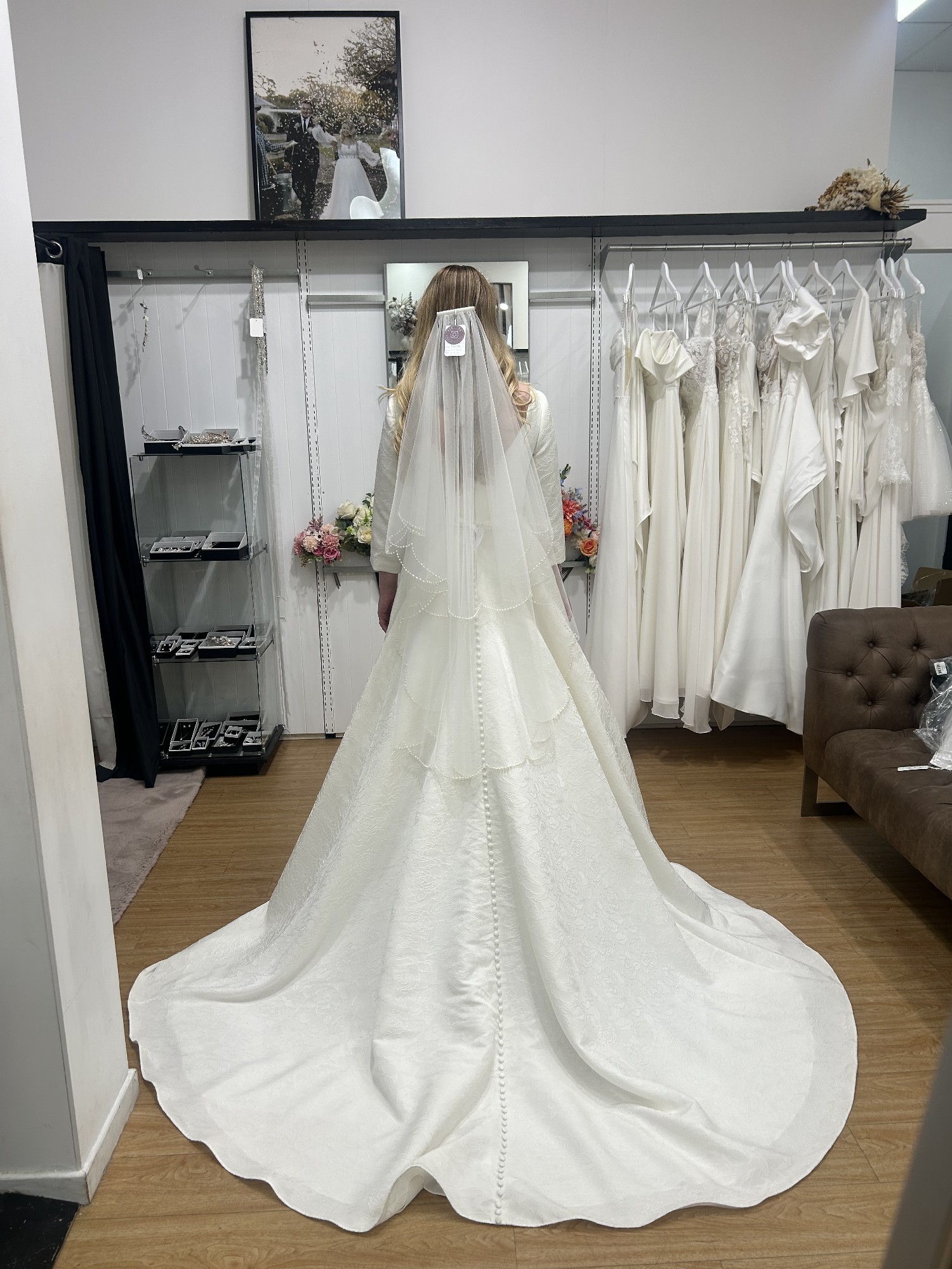 Also have a brand new two tier scalloped pearl veil (pictured) paid $450 and an ivory Mikado belt paid $150.