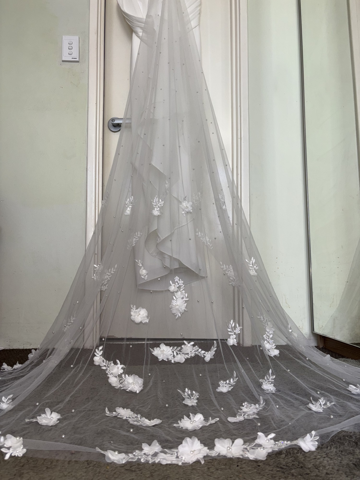 Veil is ‘romantic 3d floral with scattered pearls - Gabriella veil by Lola Knight’