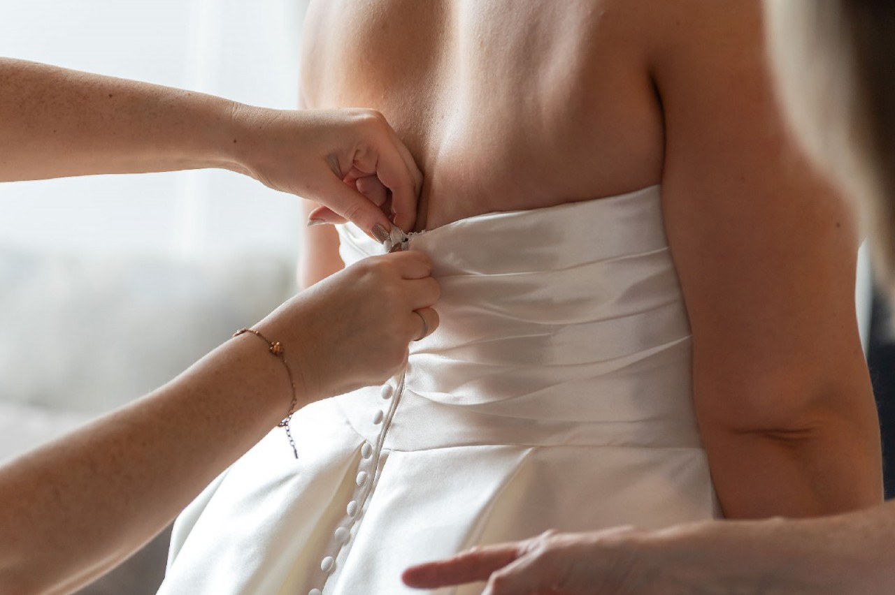 - Hem shortened to fit me (5'6" and wore 2" heels for fittings and on the day)