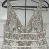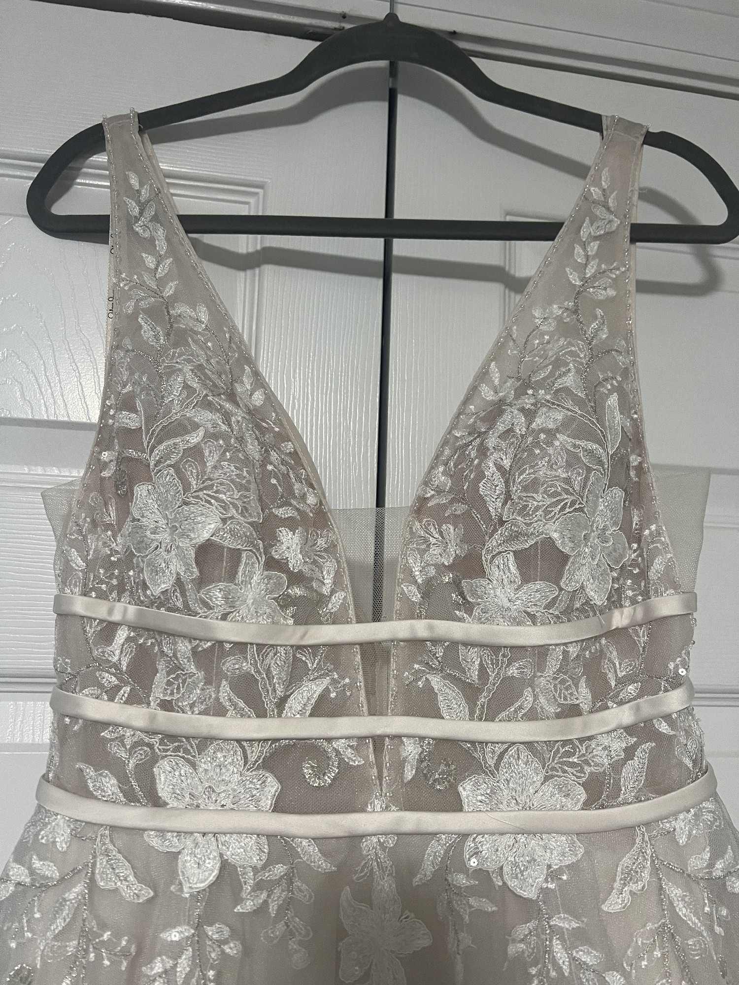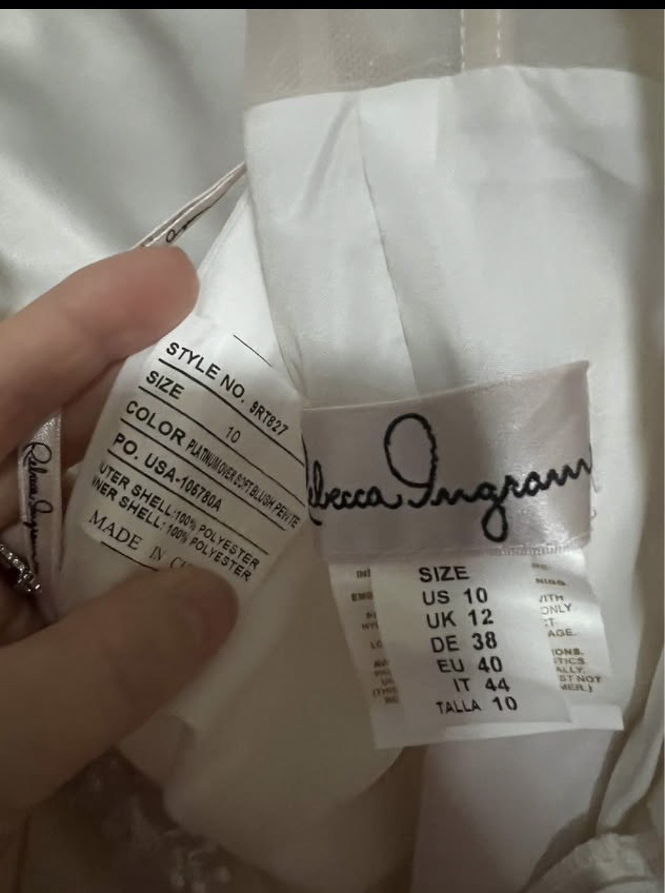 I had a corset made in this dress to fit me. So the dress size would be a 16. But would fit like a 10 if you wanted it too. It is hemmed (I’m 5’2) the dress was cleaned my myself.