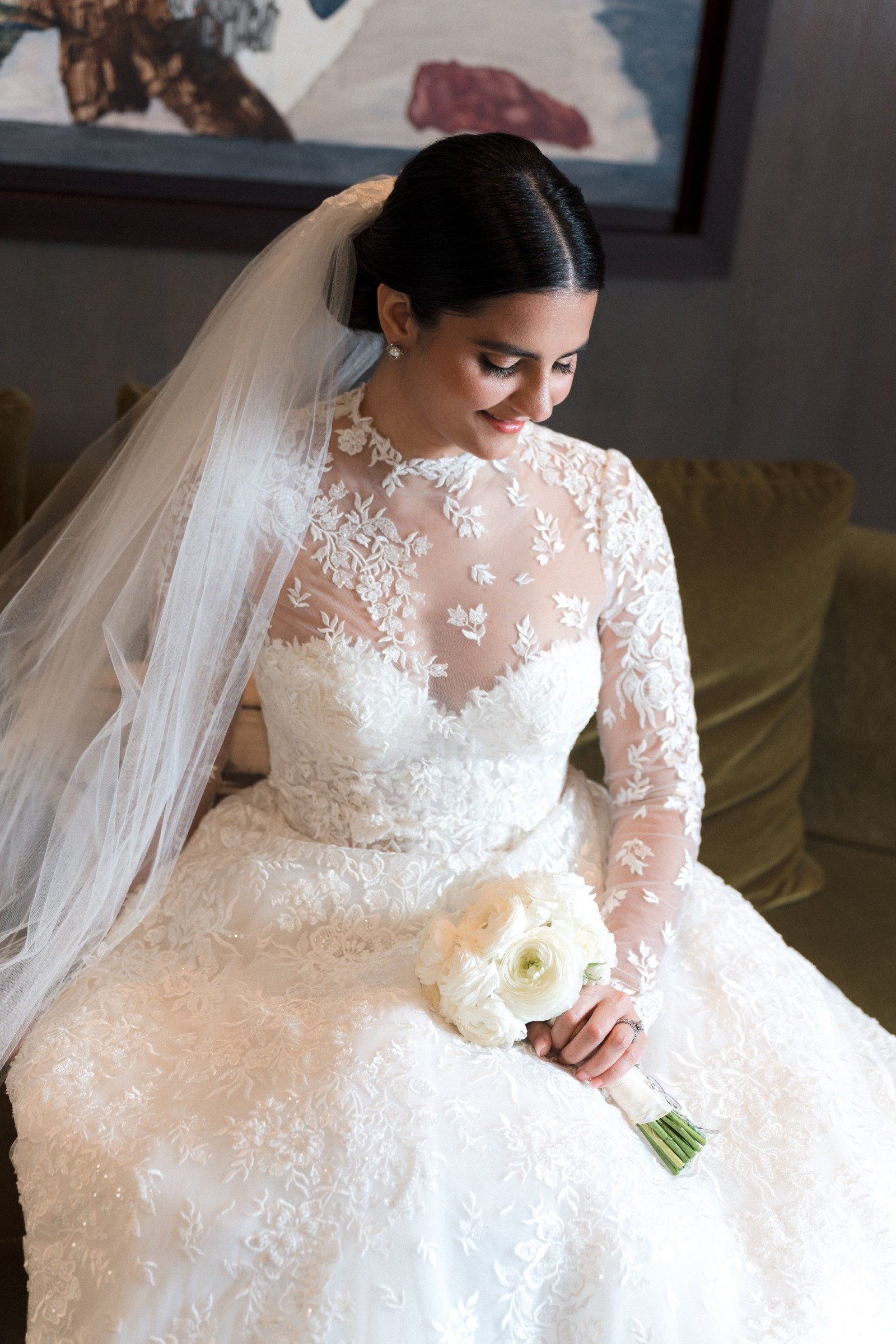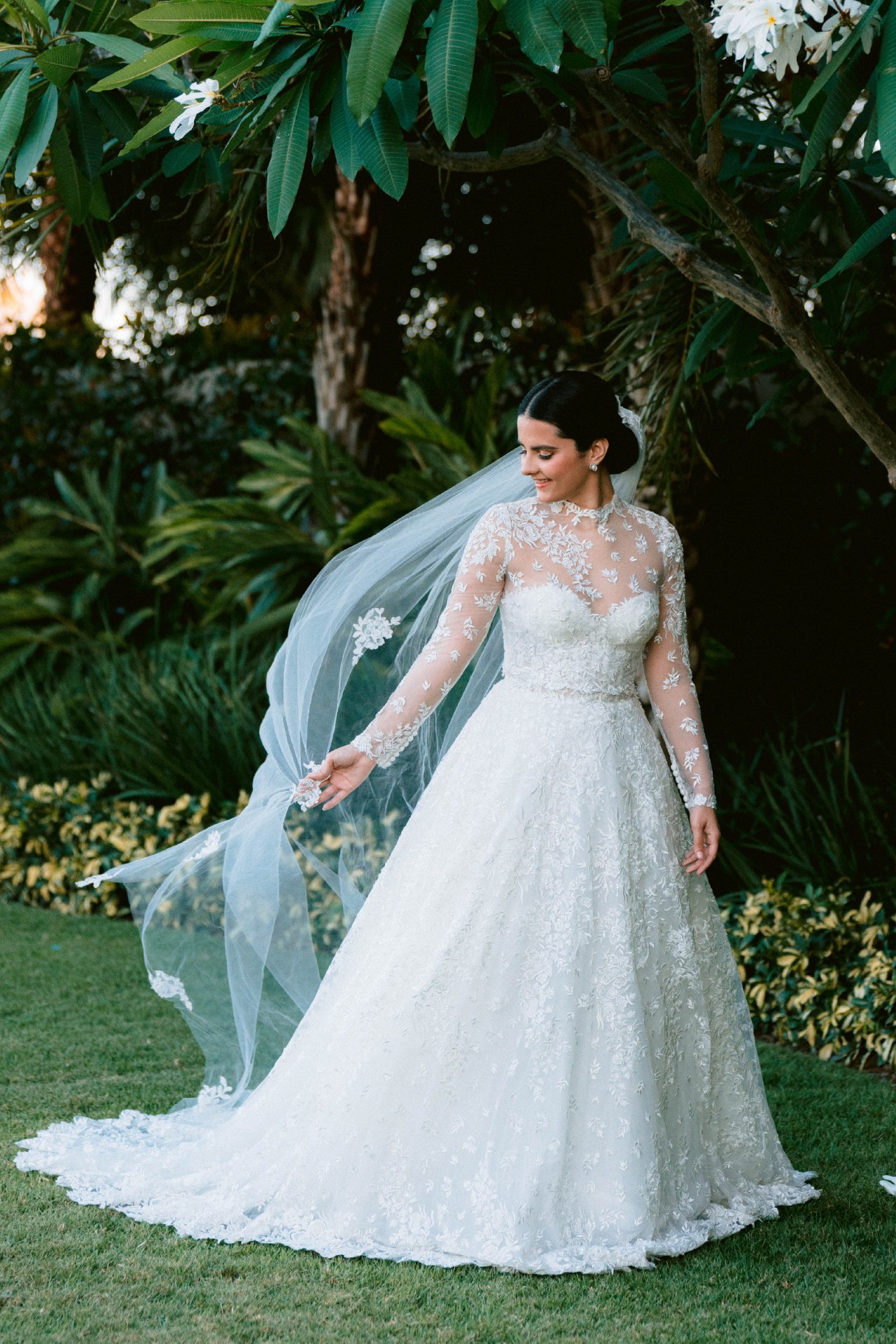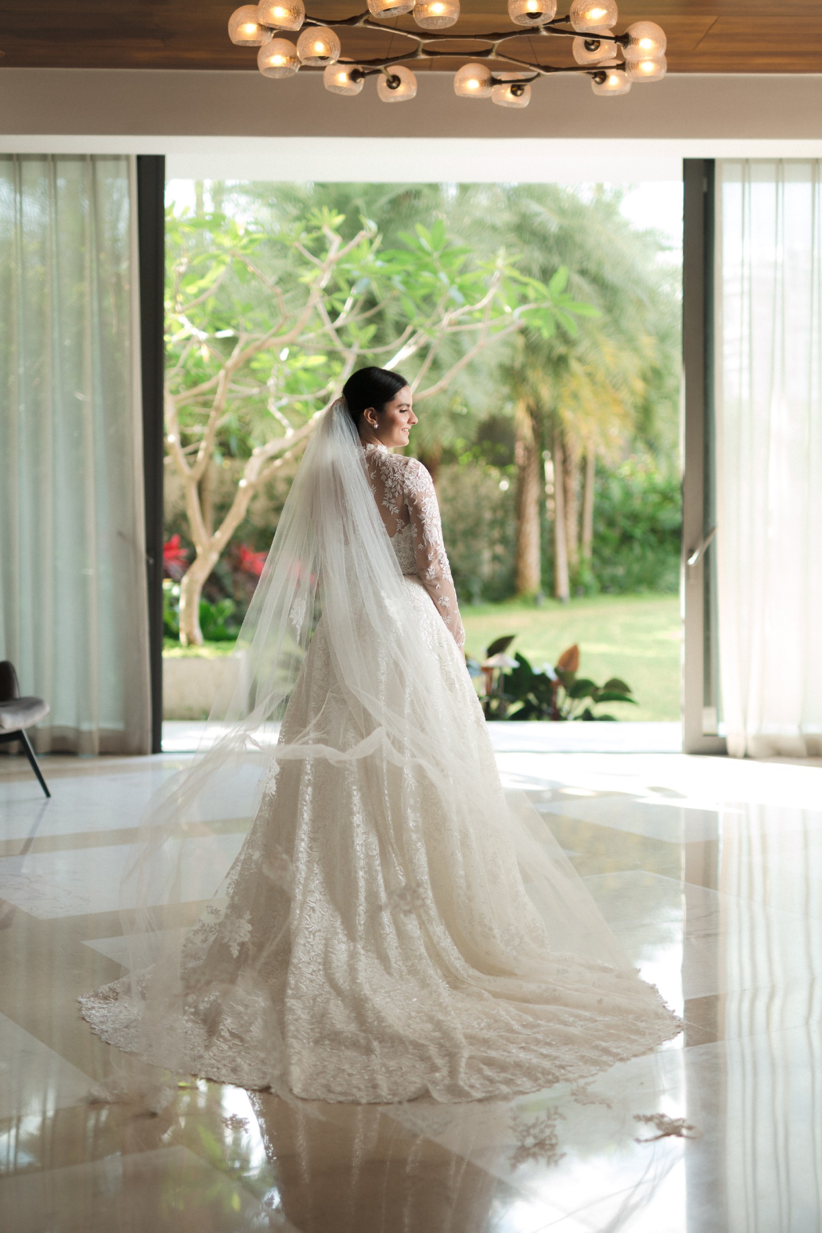 Also included is a long cathedral-length veil with delicate lace detailing.