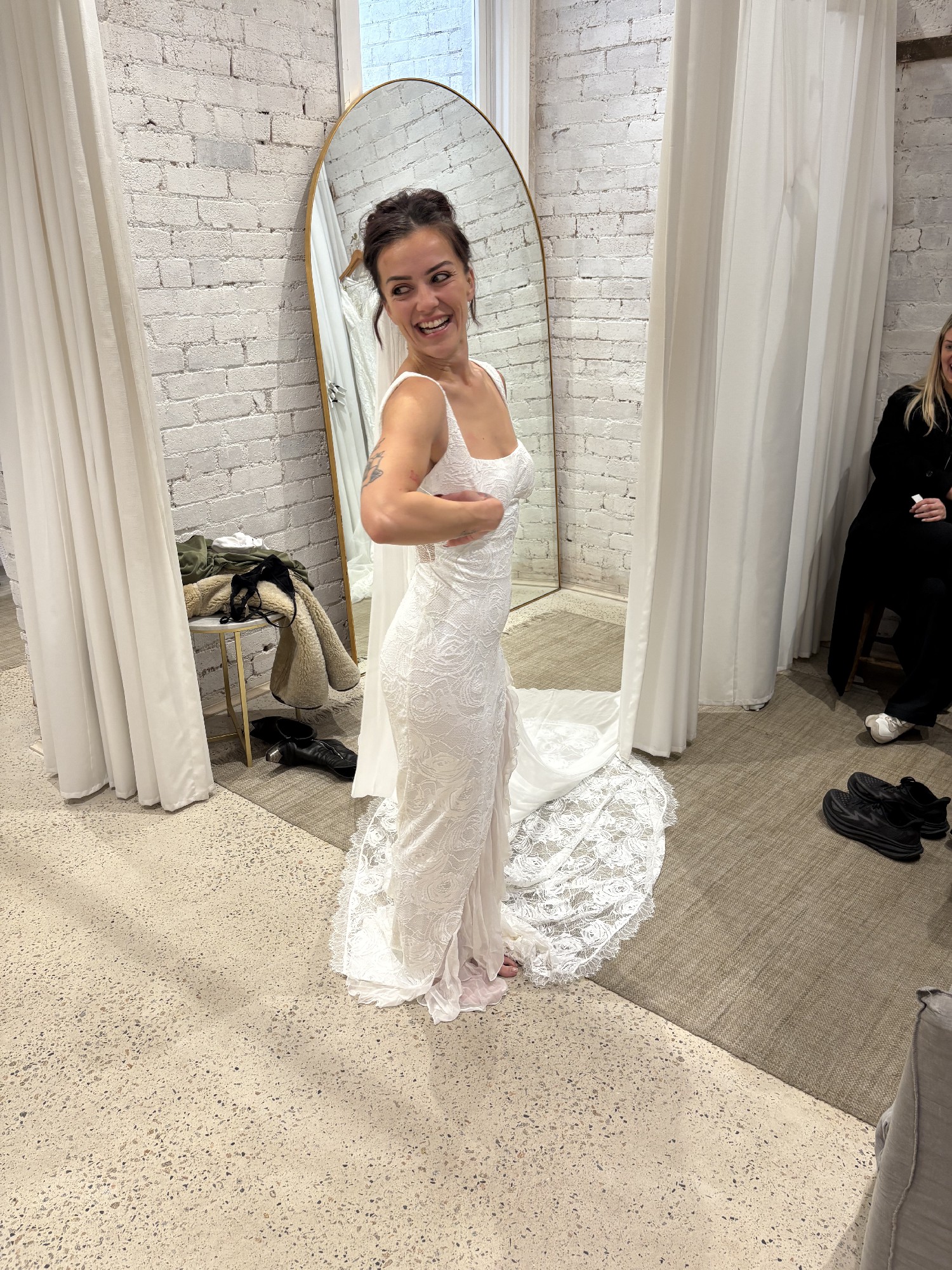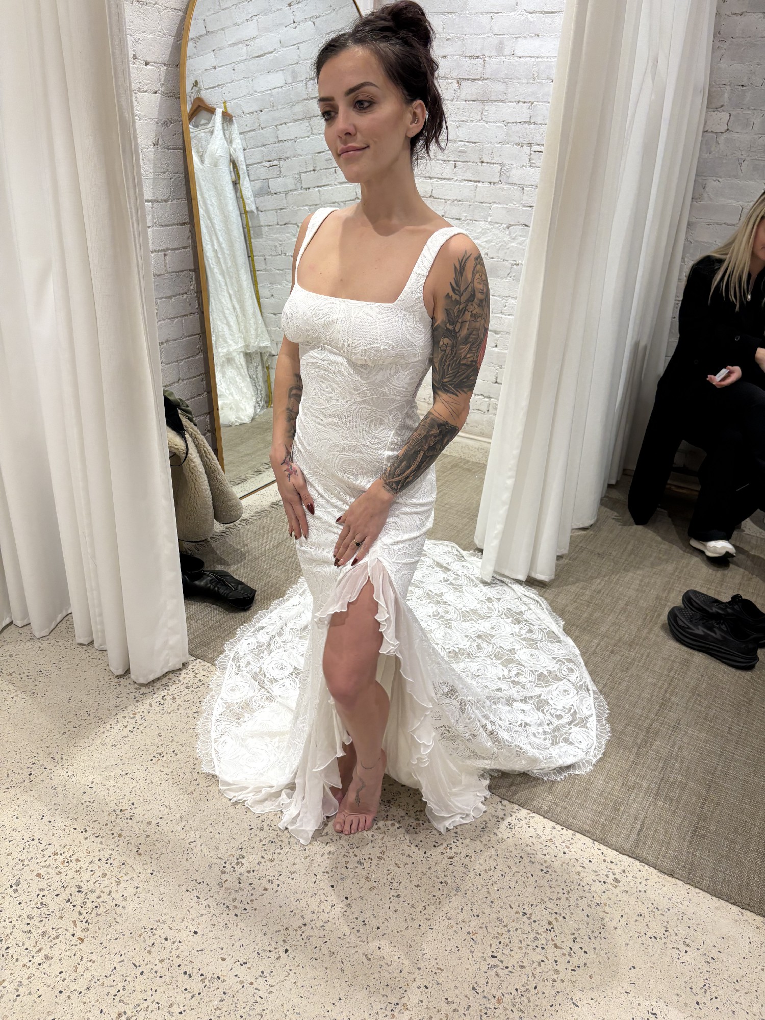 Selling this beautiful GLL dress I purchased at the GLL store in Melbourne. The dress is stretchy and would fit an Aus 6-8. It has not been altered and without altering would fit anyone beautifully. I am 5”3 and was planning on having the slit raised slightly. However, my Ideal dress style has changed slightly and this has not been worn, only tried on. Would love for her to find her bride :) This dress does not come with a box and the veil is not included.