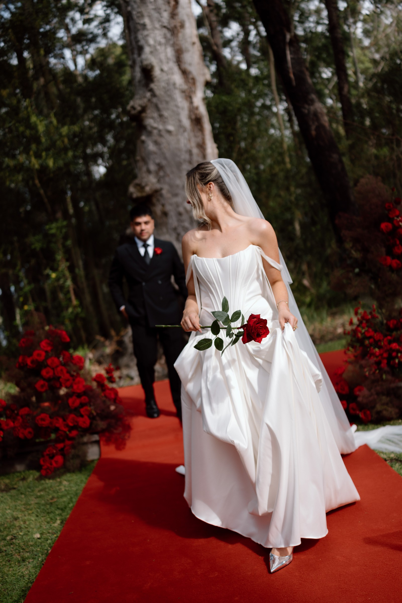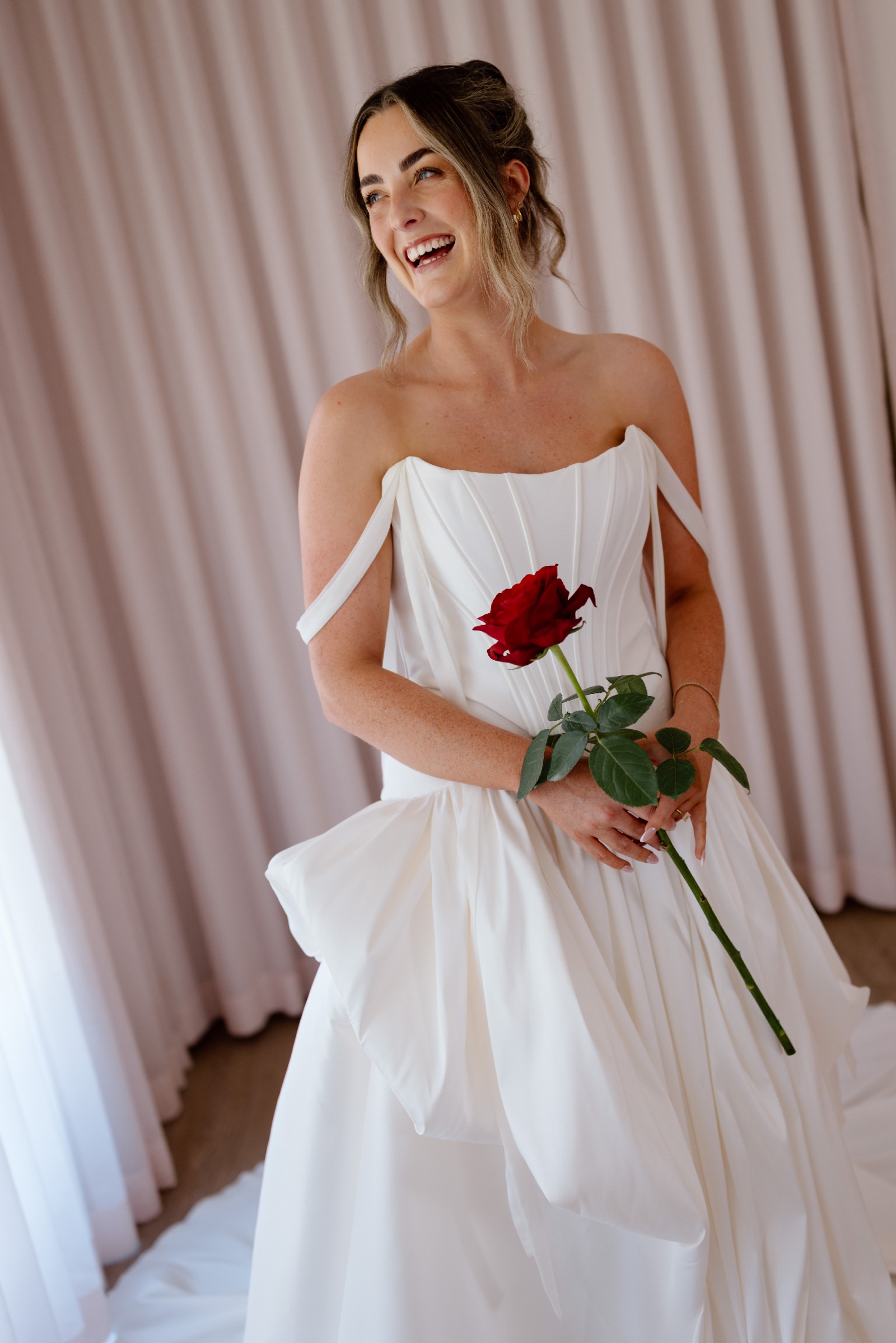 The Marie Gown encapsulates the soul of the New Realm collection, uniting rich history and couture craftsmanship into a dramatic and unforgettable design. This gown features a fully structured bodice that provides a firm and flattering fit, while a billowing skirt and full-length Mikado matte satin train create a sense of grandeur and opulence. The floating silk chiffon straps can be worn gracefully off the shoulder or on, offering versatility and personalisation.
