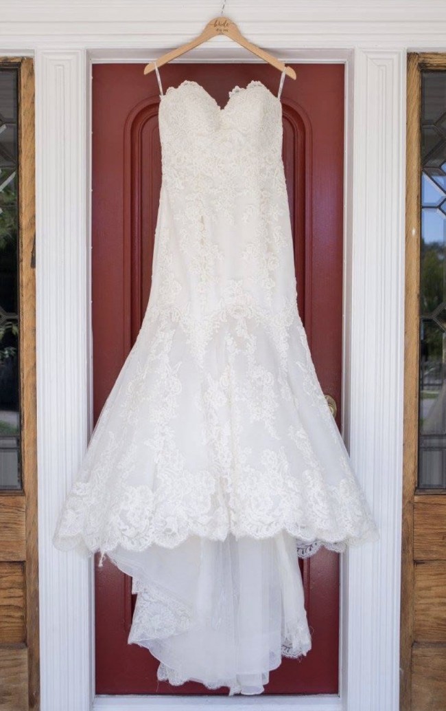 Dakota features a universally flattering, intricate tulle and lace overlay in an ultra-chic mermaid silhouette. With exquisitely scalloped hem lace and a soft strapless neckline, the full-length gown is fit for any bridal dreamscape. The Dakota wedding gown also features a trail of delicate buttons cascading down the center back for a seamless closure that provides the perfect finishing touch.