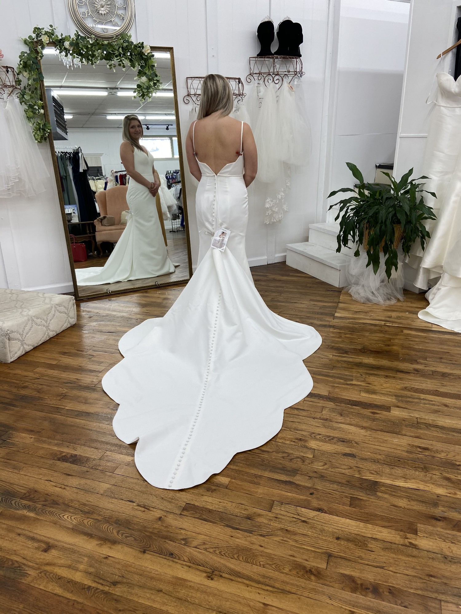 This stunning Stella York wedding dress was the perfect fit for my special day, and I can’t wait for it to make someone else’s dreams come true. The fit and flare silhouette accentuates curves in all the right ways, creating a timeless yet modern look that truly showcases the figure.