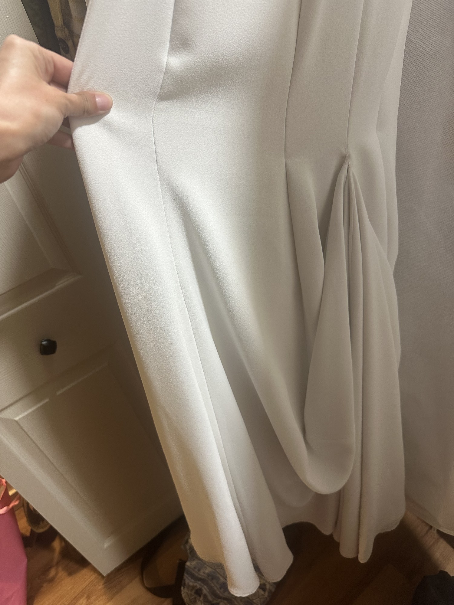 The dress is in the extra long length and that was not hemmed!
