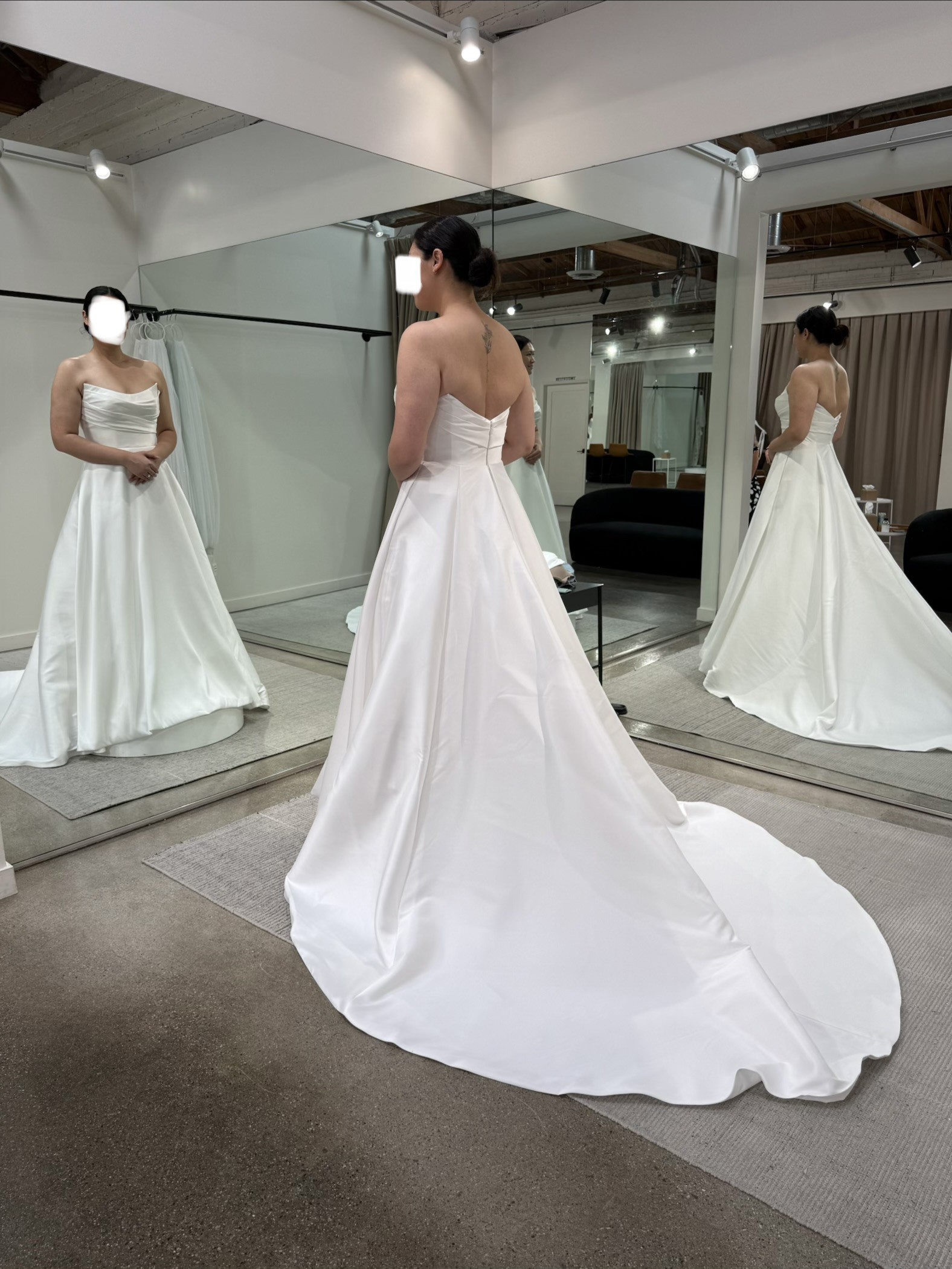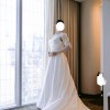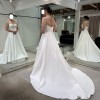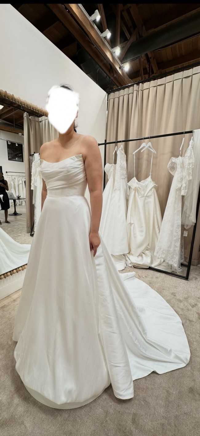 The low square back adds a touch of contemporary drama, while the sleek skirt flows effortlessly into a subtle train for an elegant finish. Understated yet striking, the Keoni is perfect for the modern bride seeking a refined, fashion-forward look that will never date.
