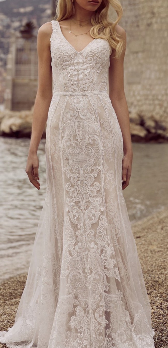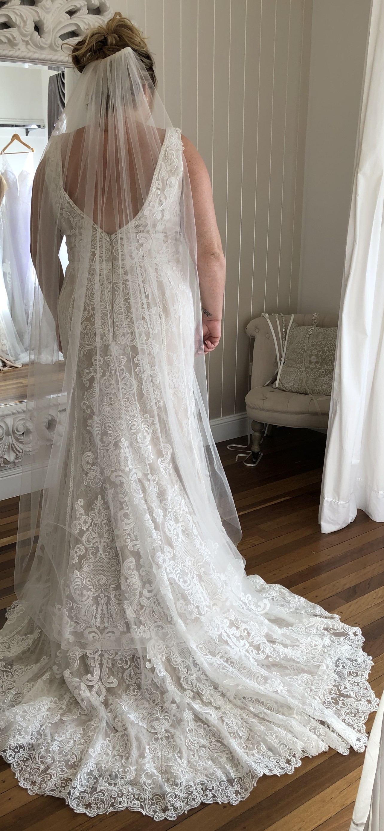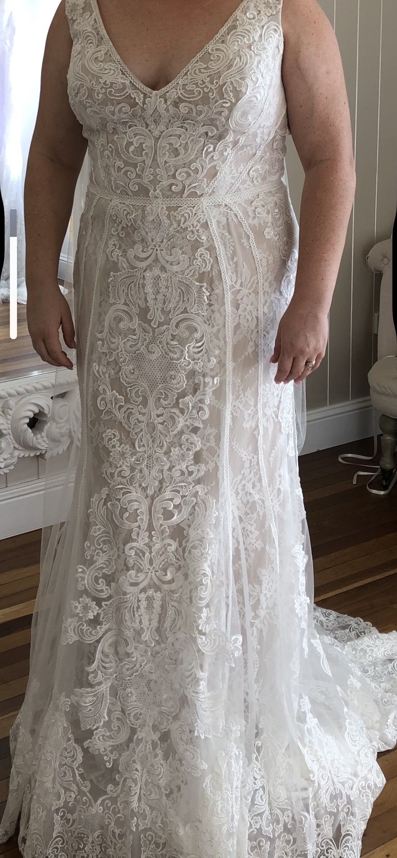 Ivory nude lace with flowing train beautiful fit