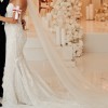 -custom two-tiered veil with blusher, not pictured & unworn, has matching lace applique from the dress