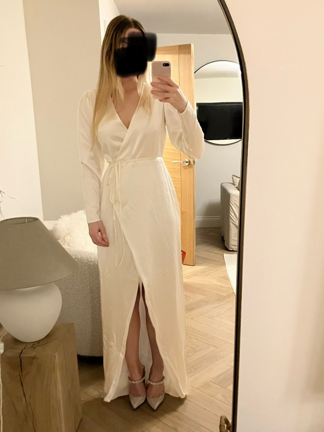 I bought this dress before deciding on my venue and actually ended up eloping abroad so had no need for this stunning dress. Depending on your wedding style it could even be worn as the rehearsal dinner dress if you have a more princess style wedding dress for on the day itself.