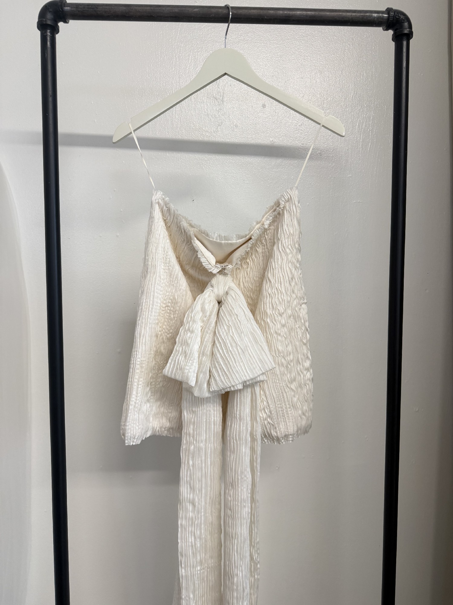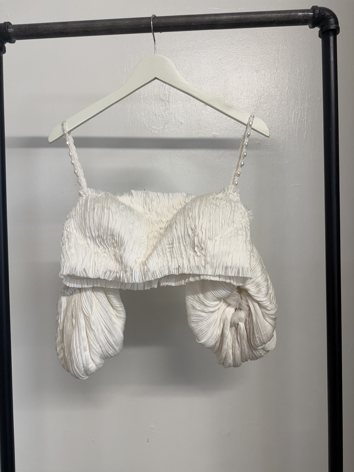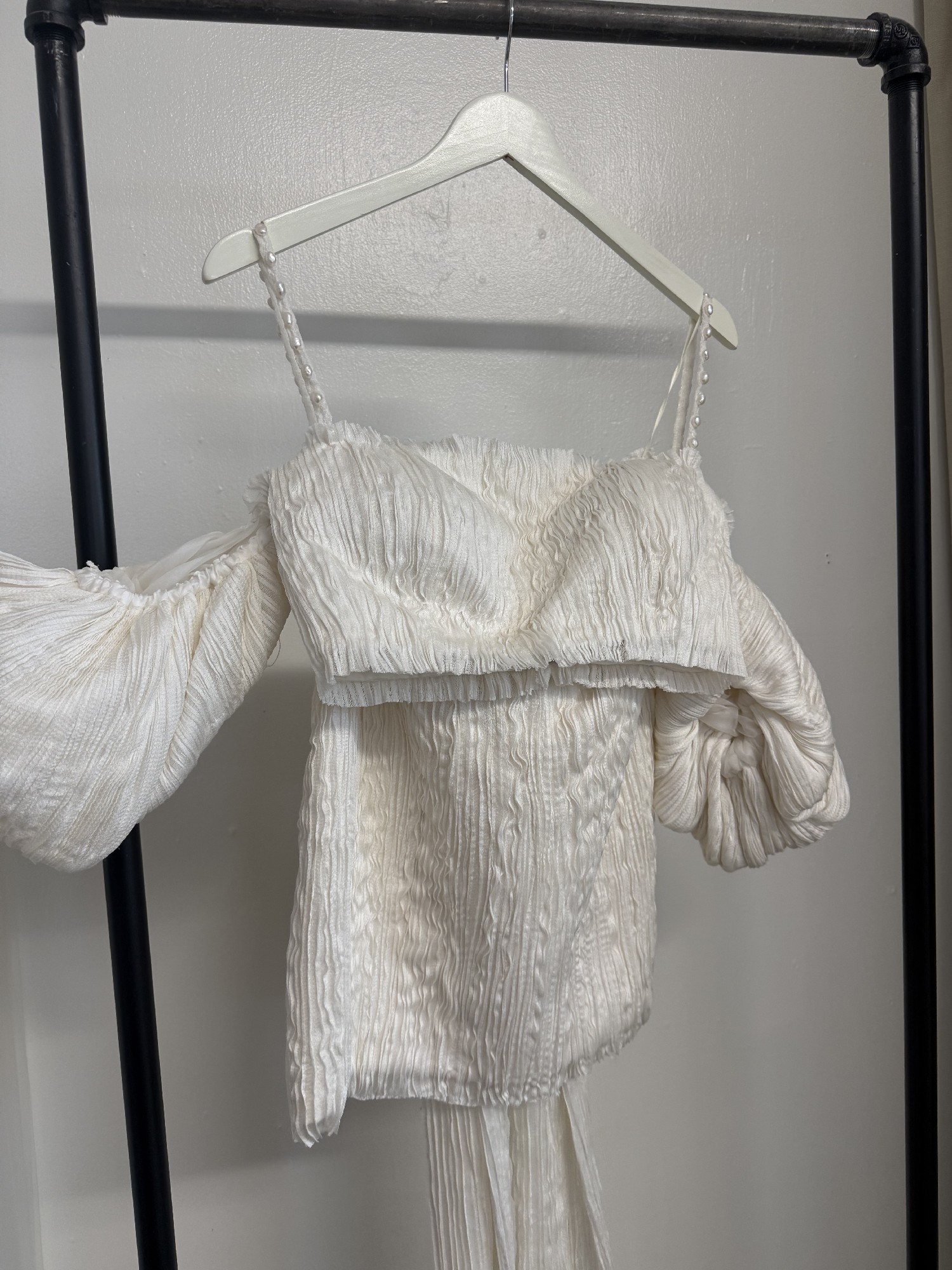 Pin-tucked silk tulle mini dress set. Freshwater pearl straps and a detachable bow. Like new condition!
