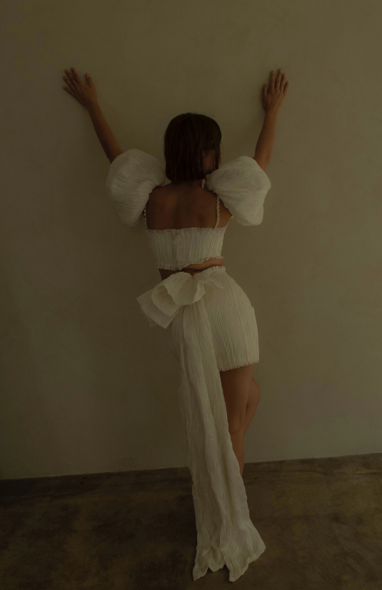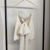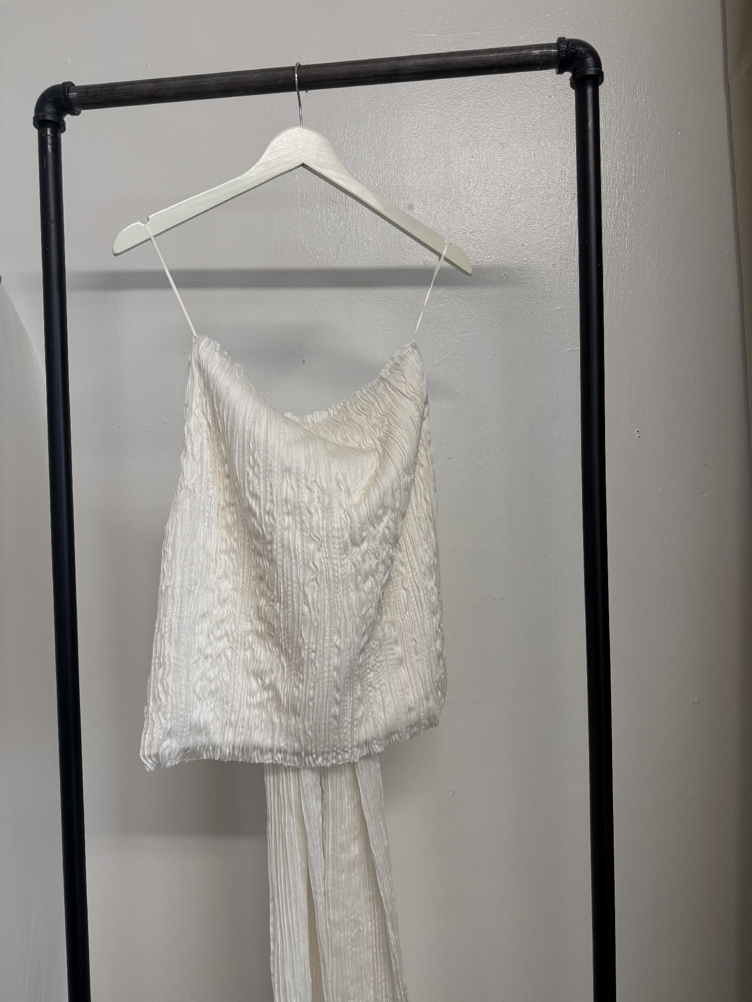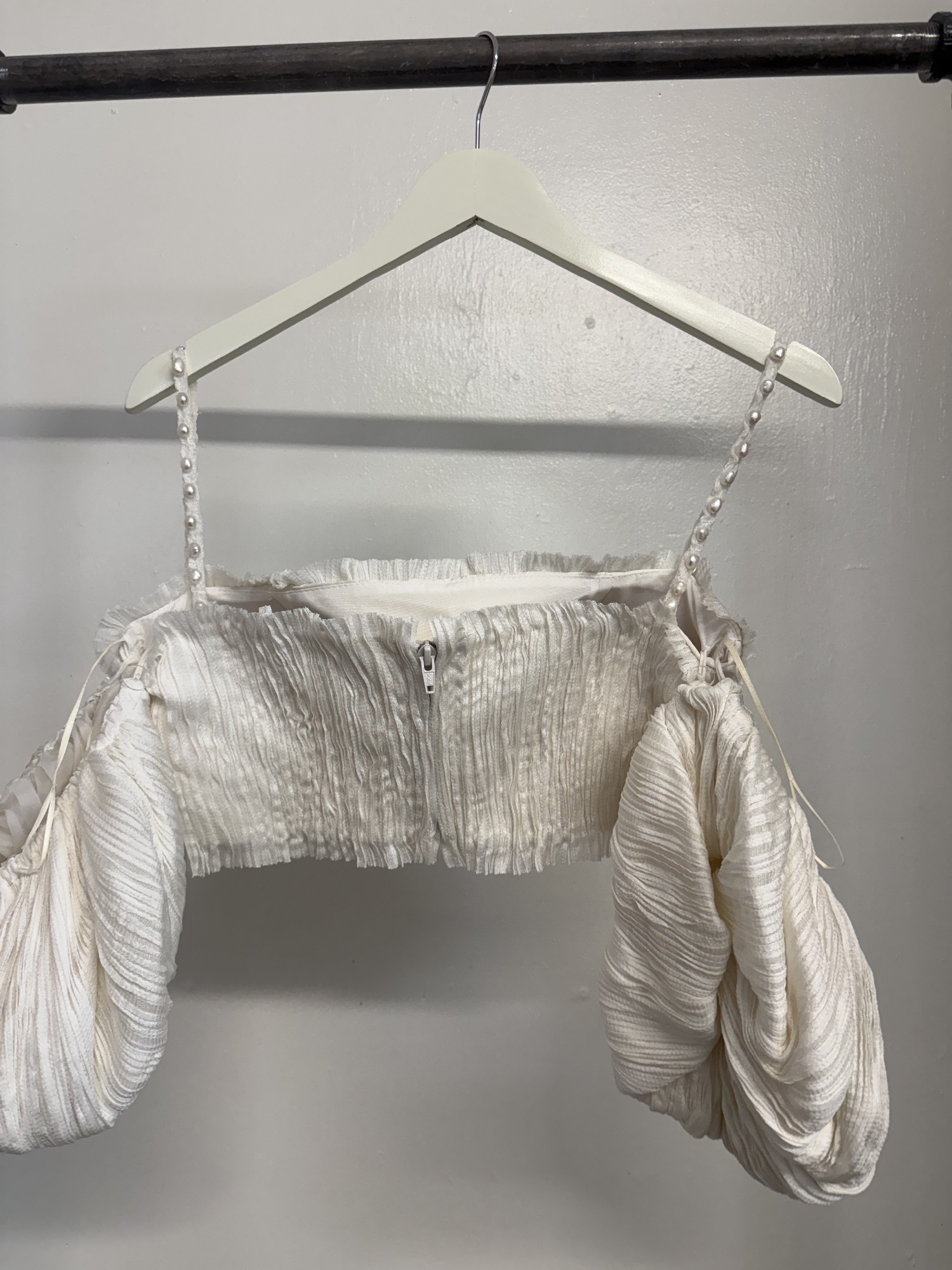 Pin-tucked silk tulle mini dress set. Freshwater pearl straps and a detachable bow. Like new condition!
