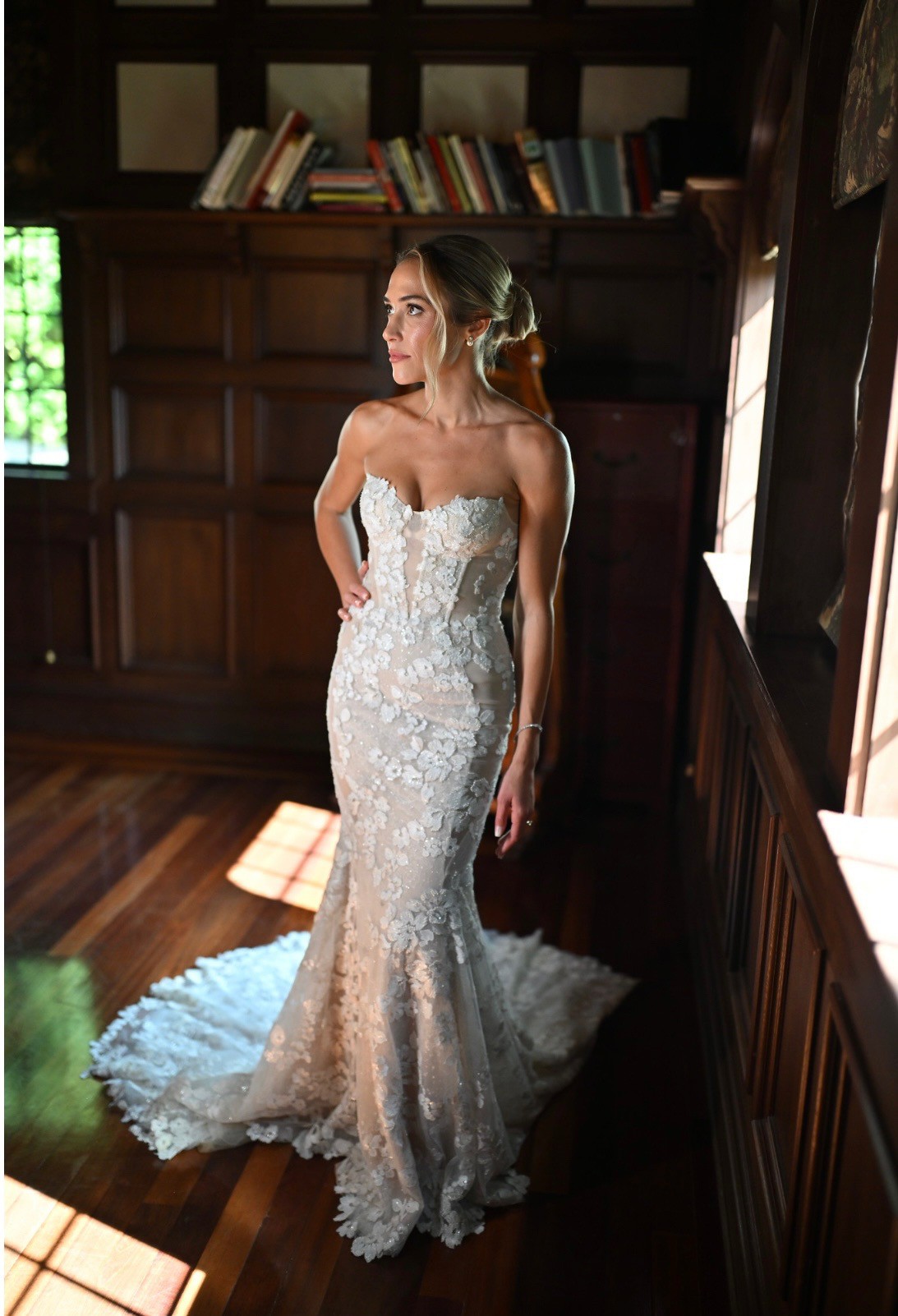This stunning Lee Petra Grebenau wedding dress was the centerpiece of my dream day and is now ready to make another bride's vision come true. Designed with a breathtakingly elegant mermaid silhouette, it contours beautifully, highlighting your figure and allowing you to move gracefully. The sweetheart neckline and strapless design add a romantic touch, while the low back creates an alluring look that is simply unforgettable.
