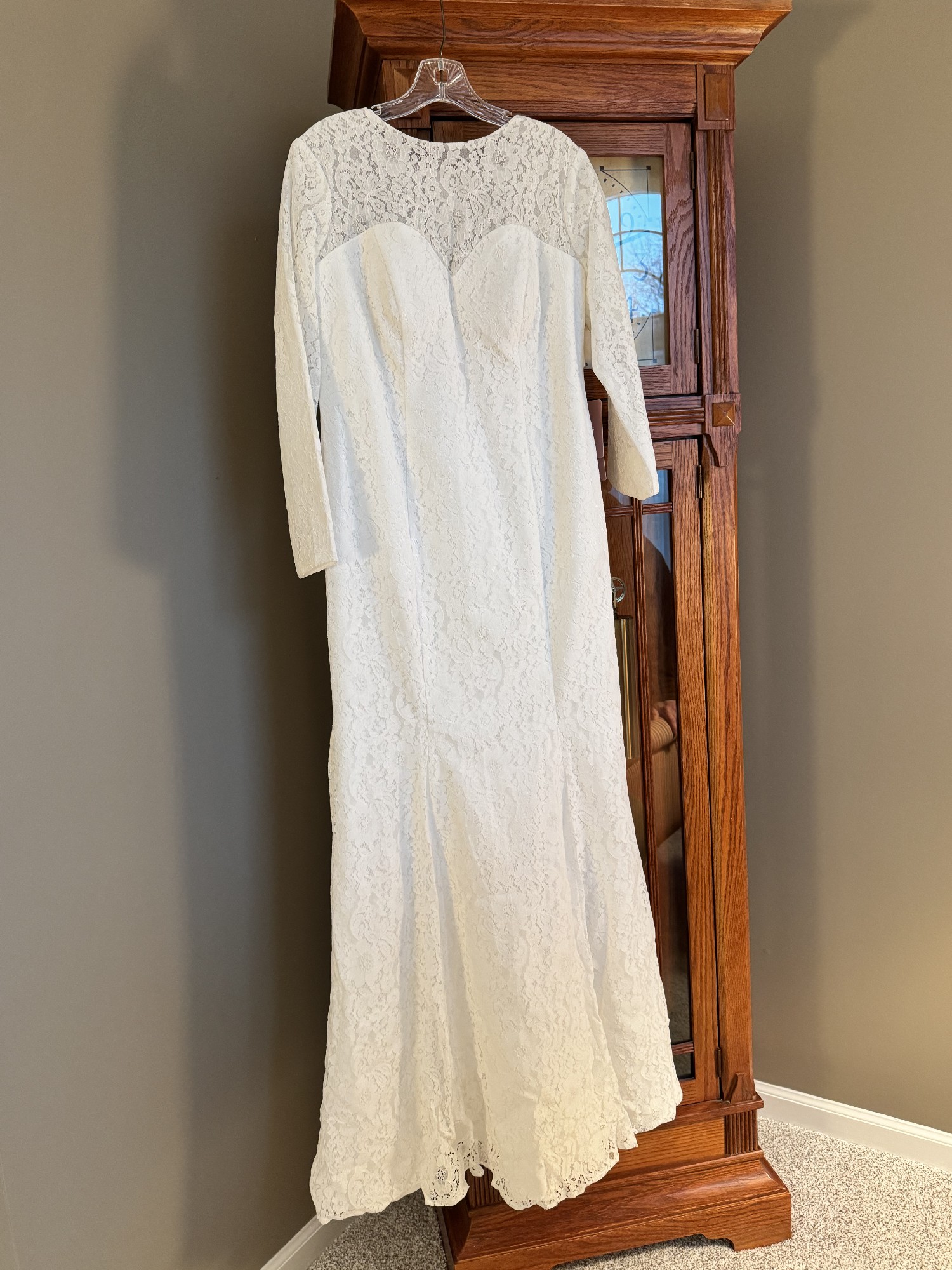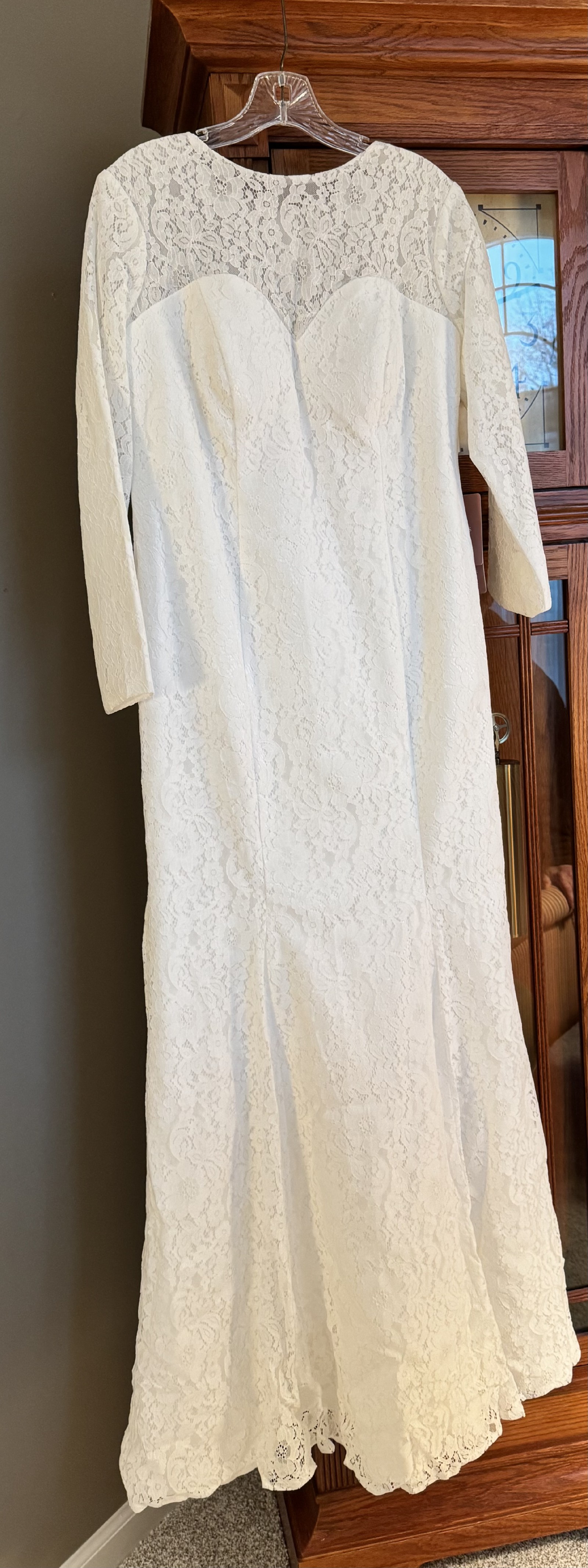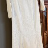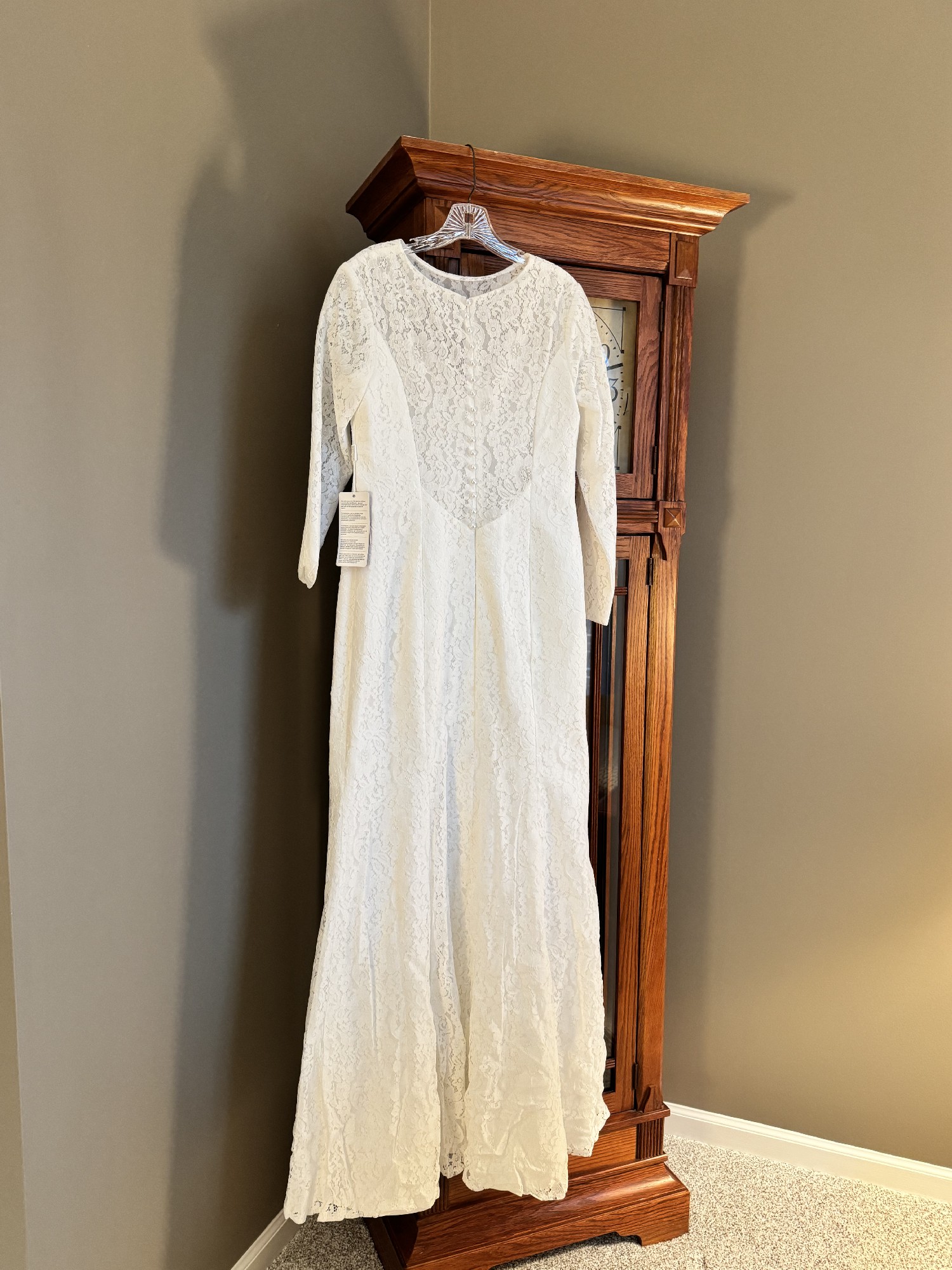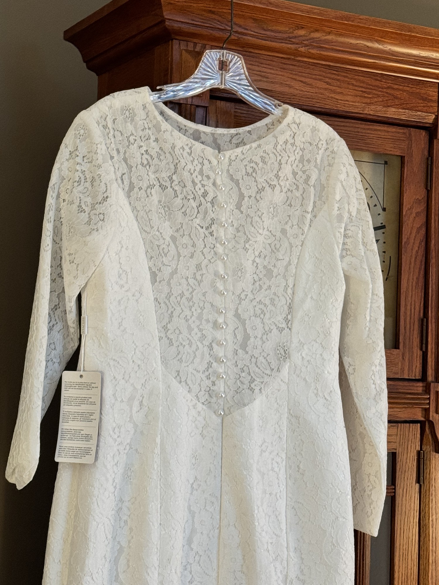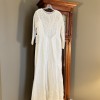 Beautiful gown, ivory color, decorative buttons up the zipper on the back, tags still on it. Satin with lace.