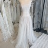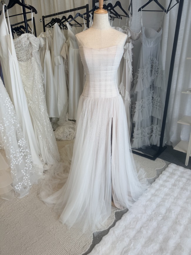 ROMANTIC STRAPLESS TULLE DROP WAIST A-LINE WEDDING DRESS WITH HIGH LEG SLIT