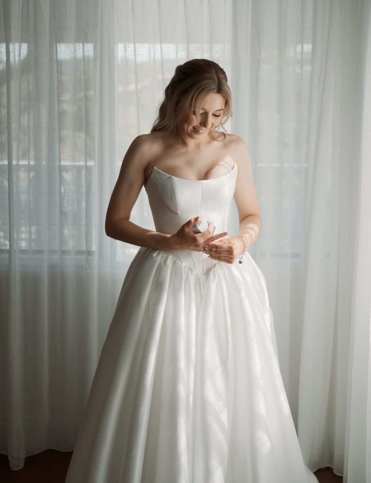 About this dress Miles by Chosen by Kyha This is hands down the most luxe dress ever created. I don’t want to part with her, but she is in perfect condition and has so much life left. Designer description: “Crafted from a luxe woven taffeta, a gathered Basque waistline accentuates an hourglass shape made modern via a softly scooped neckline. Drama reigns supreme via the balloon skirt, making Miles a royal lesson in maximalism for minimalists. Boned through bodice with scooped neckline and gathered detail at skirt waist seam.” Fastening: Centre back zip with buttons and loops Fabric: Taffeta Colour: Bright Ivory Size 3 Kyha measurements: Bust: 88cm Underbust: 72cm Waist: 67cm Hips: 96cm Waist to hem: 125cm My standard measurements are consistent with AU 6–8 / size XS–S. Bust usually 85cm, waist 67cm, hips 98cm — this is what I’ll usually shop according to. I was between a Kyha 2 and a 3 (roughly AU 6 and 8) for this dress, so we rounded up and had the bust and waist brought in slightly for more snatch. She was only worn for my ceremony, as I didn’t want to risk ruining her at the reception. After professional cleaning, there are a couple of tiny grass/dirt marks near the hem of the skirt which shouldn’t be visible during wear or in photos due to the gathering of the skirt (see video). Please don’t hesitate to contact me if you have any questions 😊