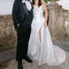This gown includes the original front split, which was raised slightly higher for a more modern and elongated look while maintaining its timeless elegance.