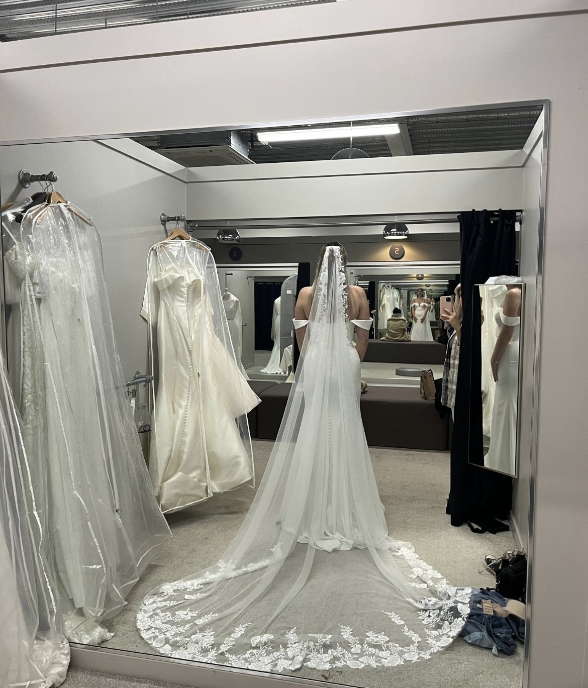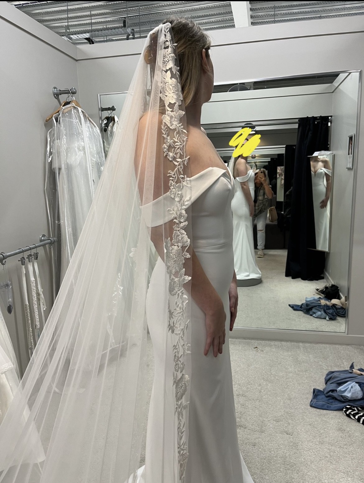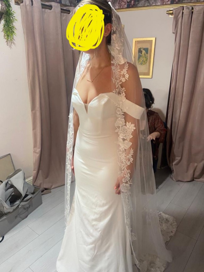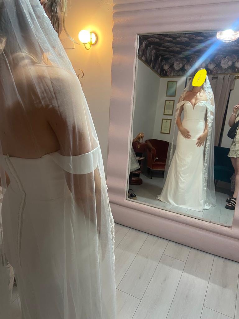 Selling a size 10 Niah style wedding dress, size small wunderskirt (shape wear underskirt) and long length lace veil. Come with 2 dress bags for veil and dress, hanger, and storage box. Can all be sold together or separately. Price listed is for all items together