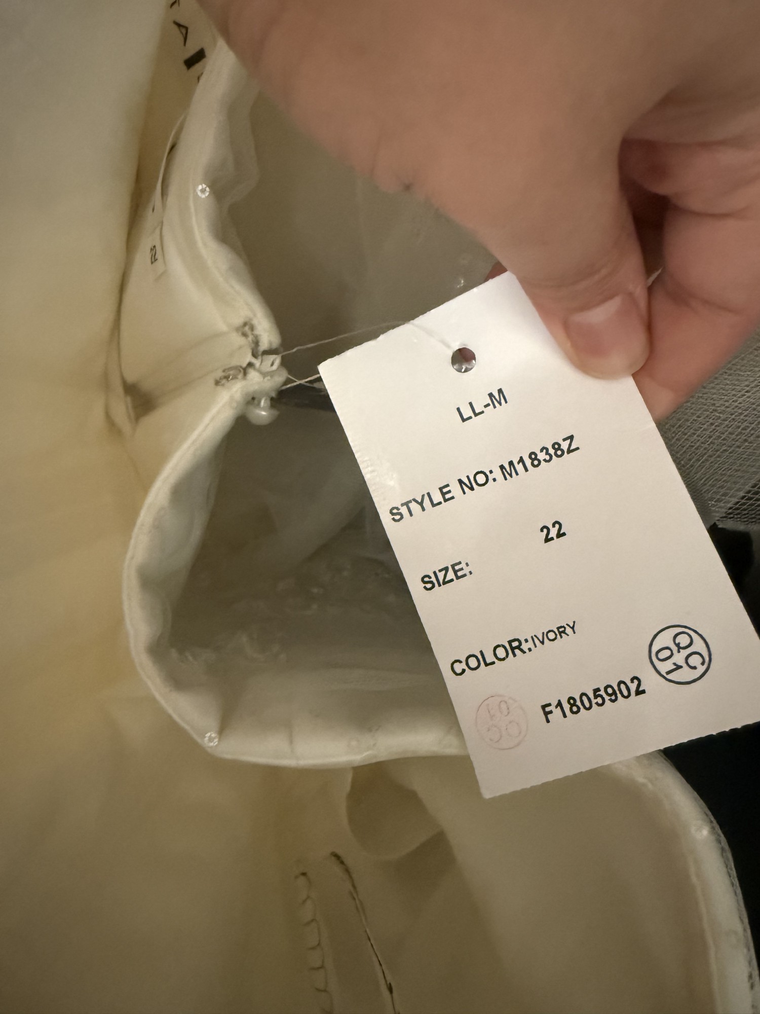 I’m selling my Mia Solano M1838Z “Phoenix” wedding gown in a size 22. The dress has never been worn, never altered, and still has the original tags attached. It has been stored safely in the garment bag since purchase.