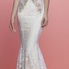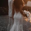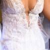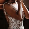 Simple in its silhouette yet complex in detail, the Luca dress is not your average wedding dress. It is form-hugging yet demure thanks to the presentation for the lace on throughout the garment. An elegant bride will need little more than these to complete the look.