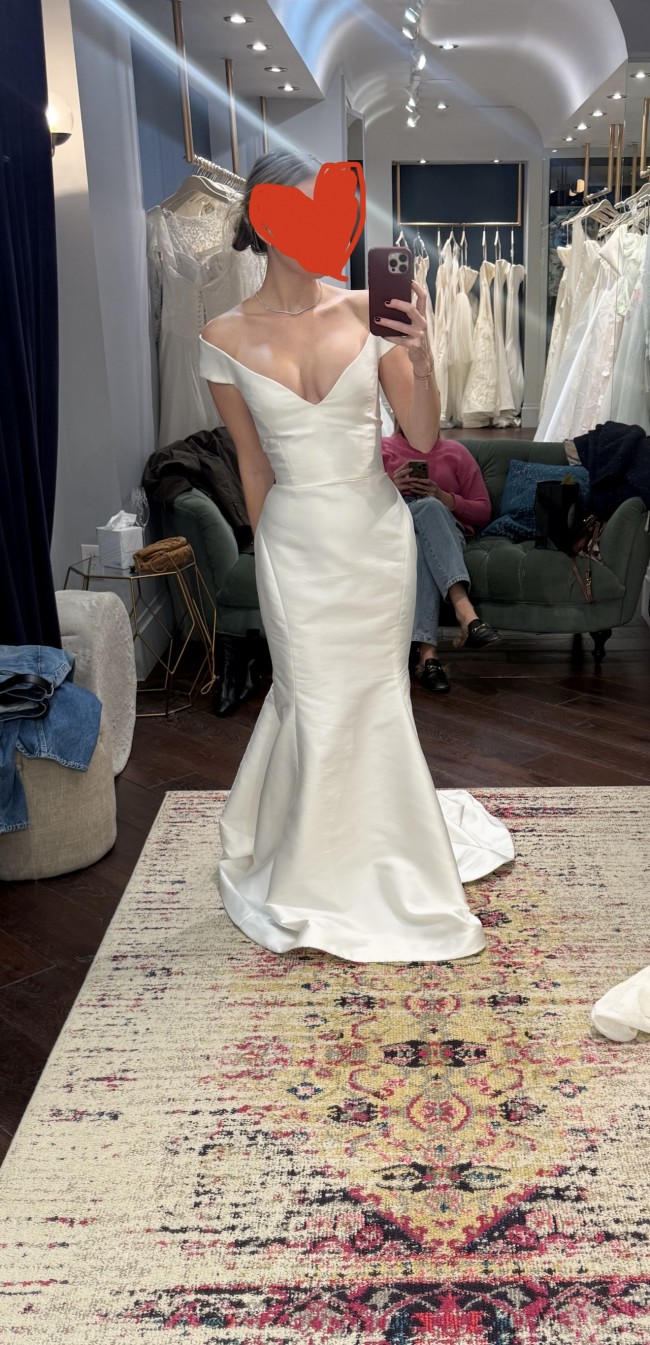 I purchased this beautiful Reem Acra dress at a sample sale just a few months ago and was so excited to wear it for my wedding. Unfortunately I found out the tailoring costs would be much higher than quoted due to the size difference. I was heartbroken, but I hope this beautiful gown can find a good home and bring someone joy!