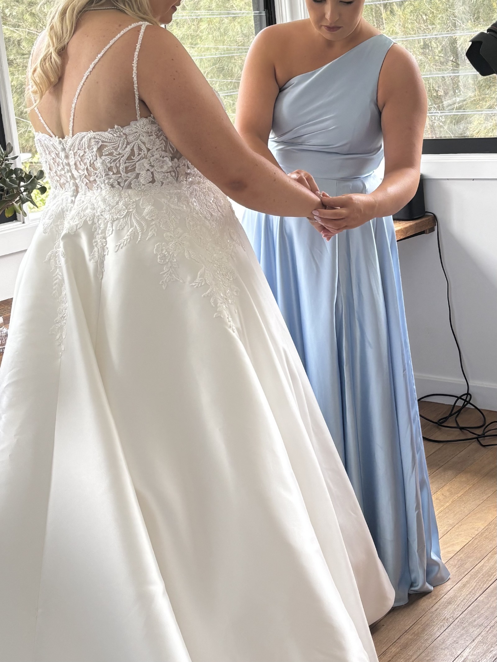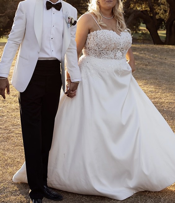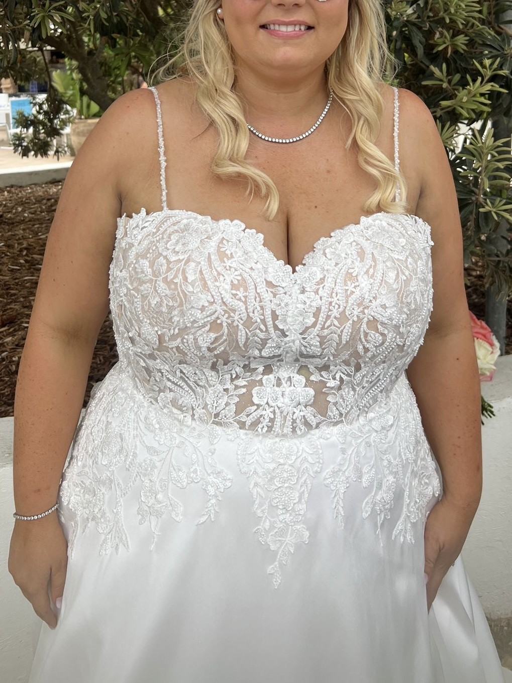 - Straps taken in and bust area taken in and the dress shortened at the front, put in supportive boning from alterations to support bigger busted ladies