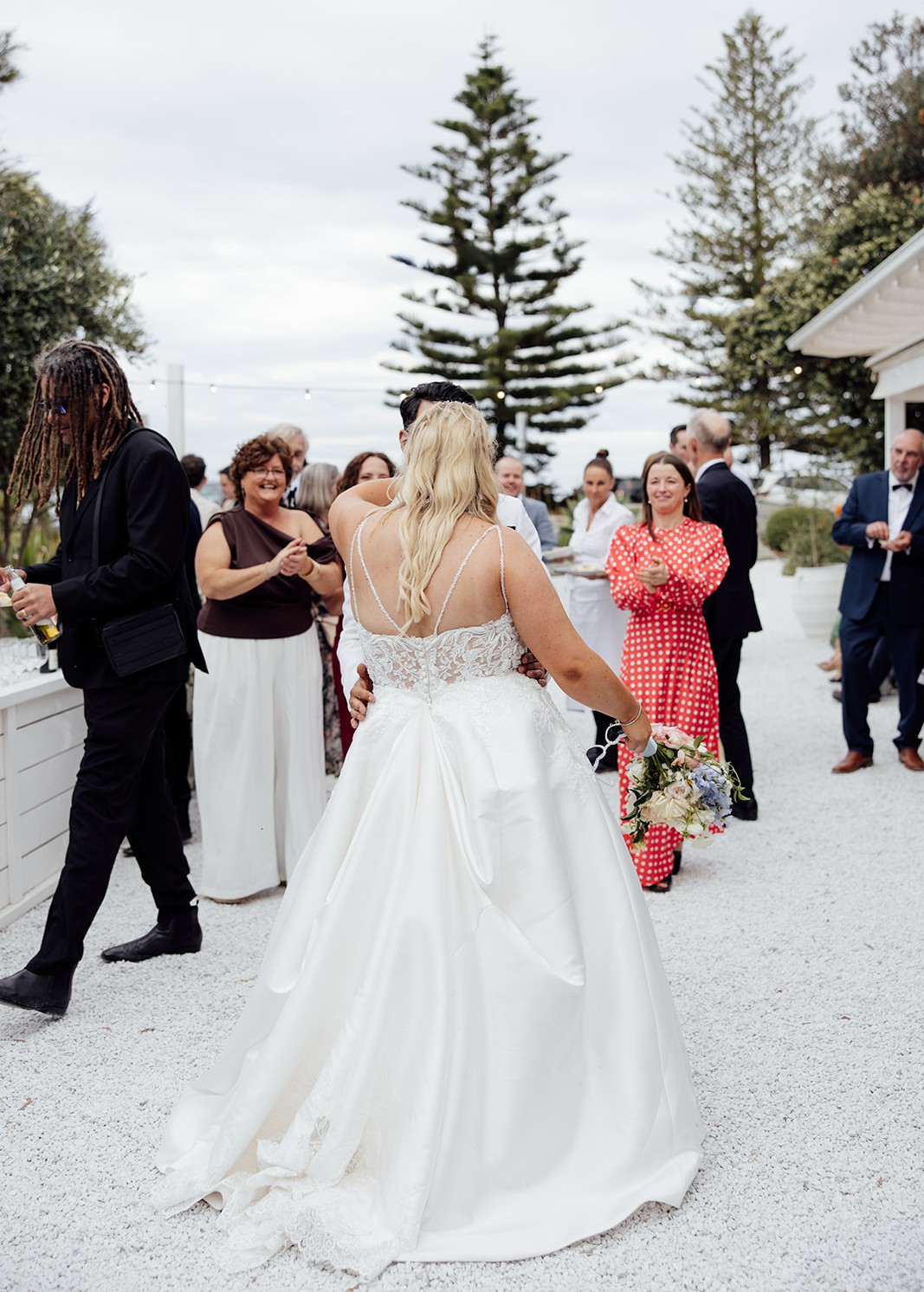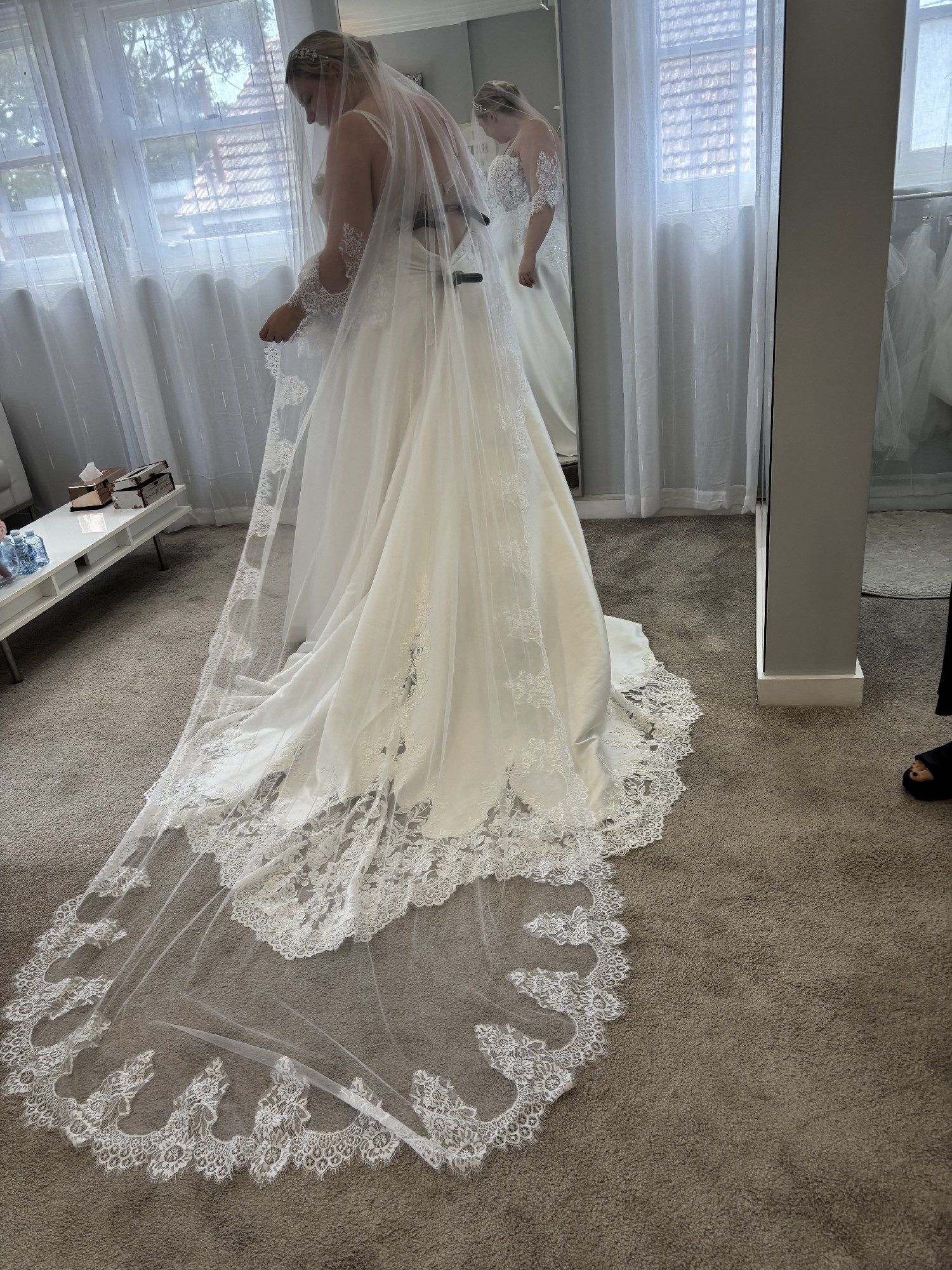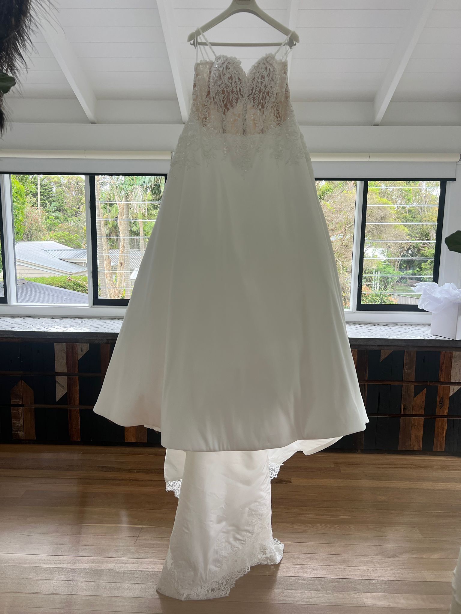 - Straps taken in and bust area taken in and the dress shortened at the front, put in supportive boning from alterations to support bigger busted ladies