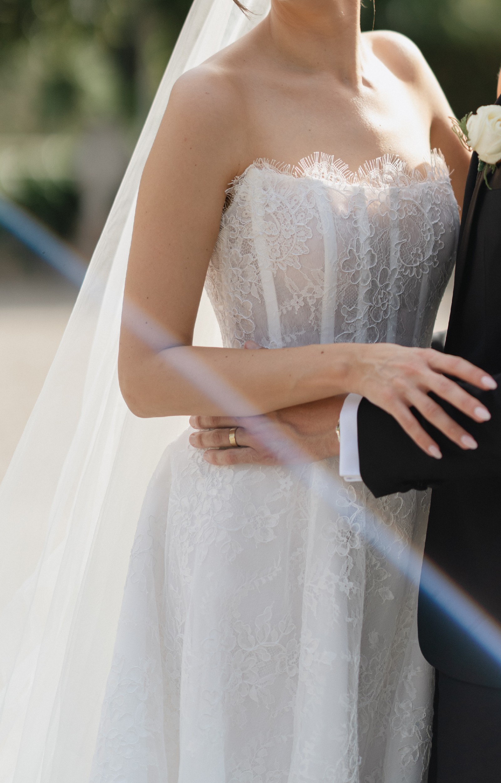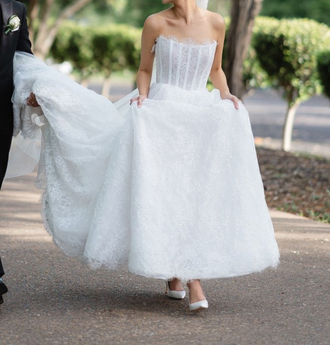 Size 8 Corston Couture Allure Gown (French lace). Professionally dry cleaned for $600.