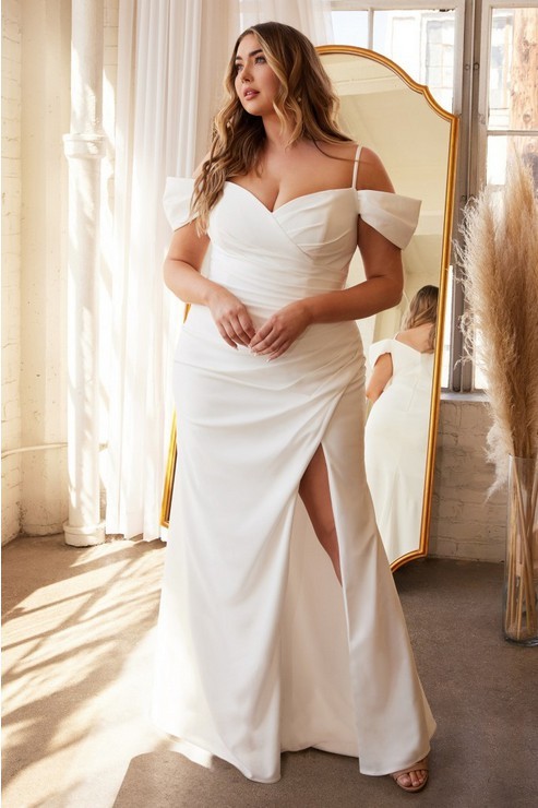 This Kv1057wc wedding dress is a stunning choice for any bride looking to make a memorable entrance on her special day. With its exquisite mermaid silhouette, it accentuates the curves beautifully while offering an elegant and sophisticated look. The off-the-shoulder neckline adds a touch of romance and allure, allowing you to showcase your collarbones and shoulders with grace.