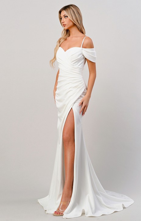 This KV1057W dress is the perfect combination of elegance and allure, making it an unforgettable choice for any bride. The fit and flare silhouette hugs your curves in all the right places, while the off-the-shoulder neckline adds a romantic touch that's sure to turn heads. As I walked down the aisle, I felt radiant and confident, and I hope this dress can bring the same magic to your special day.